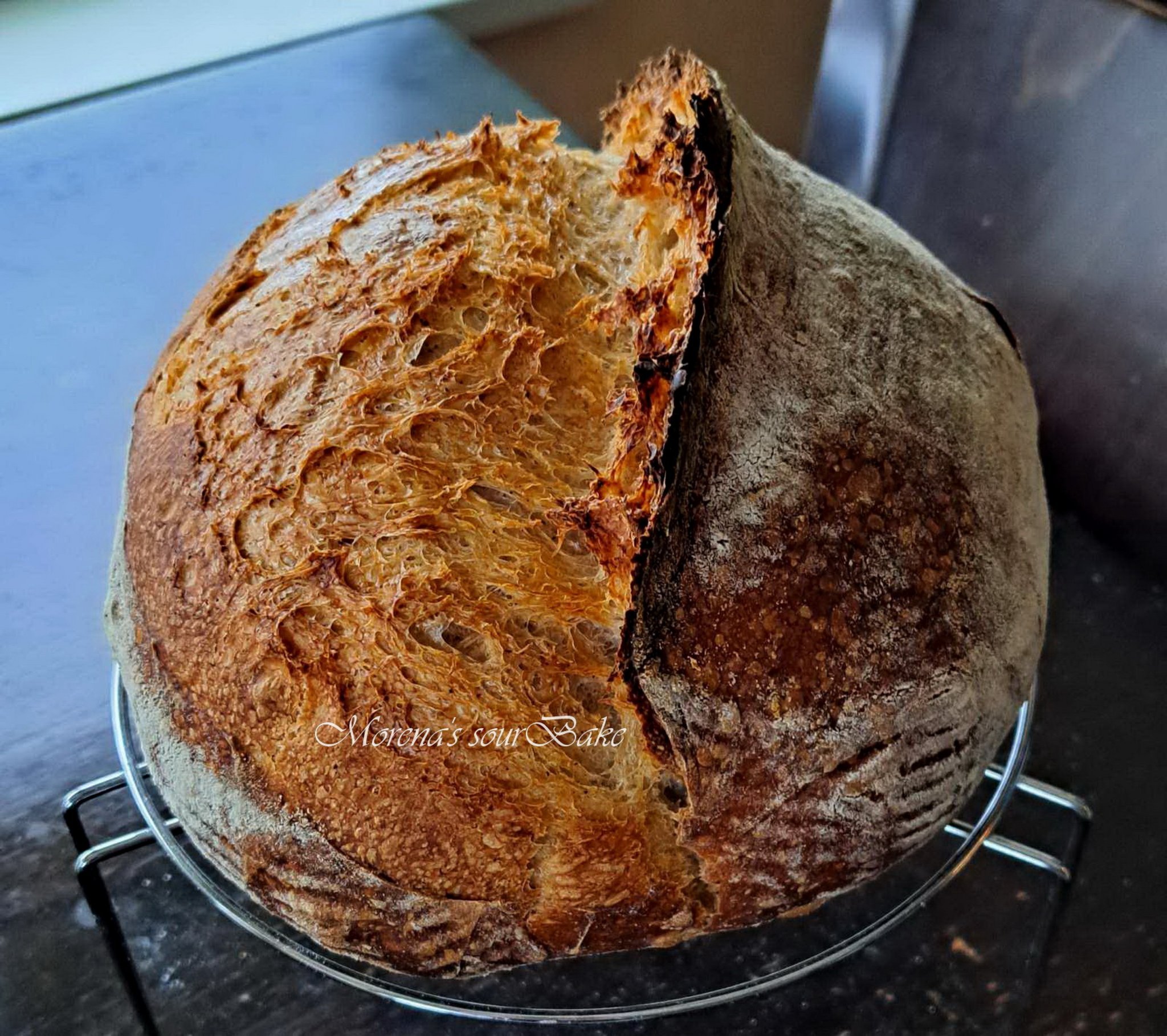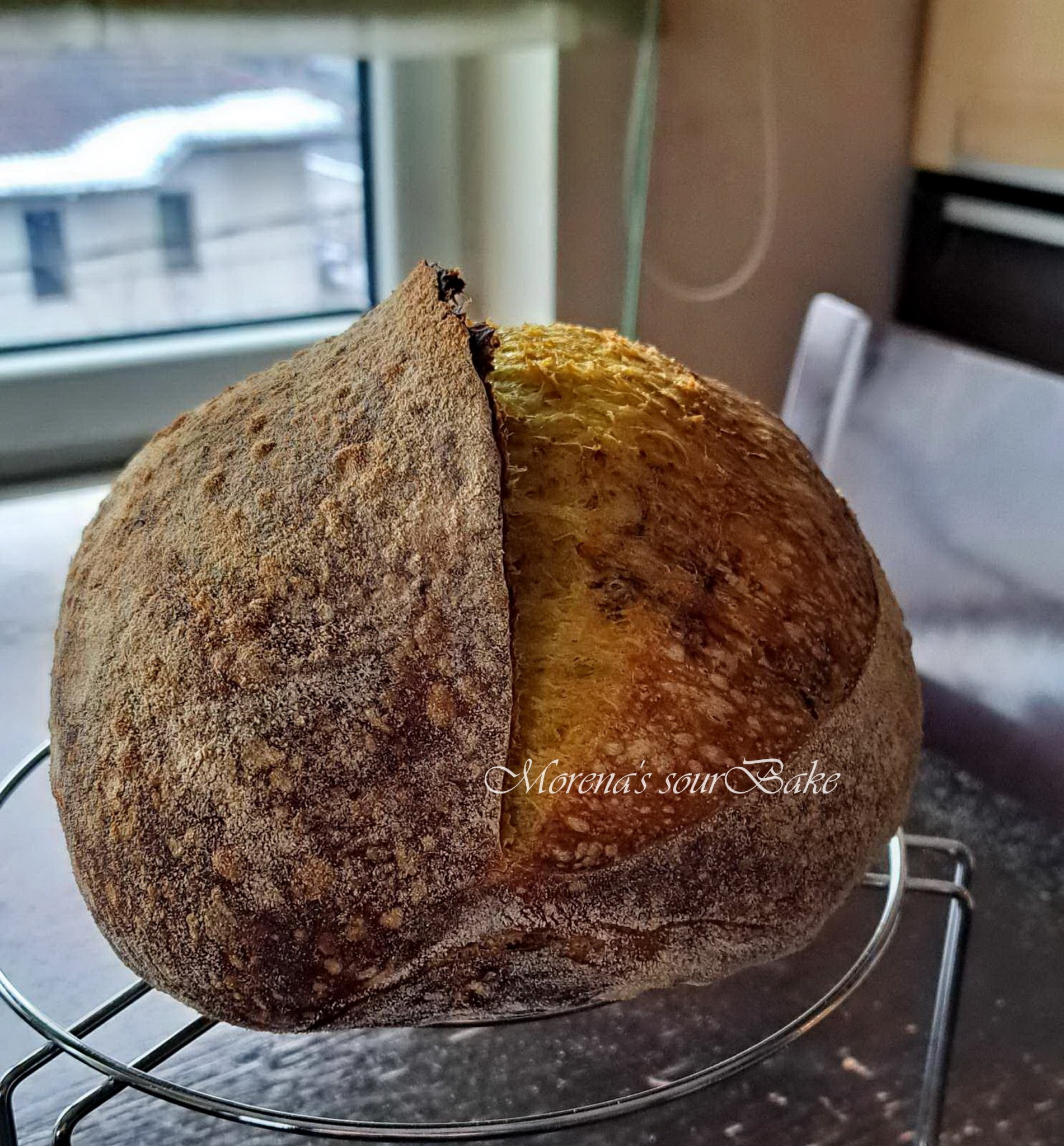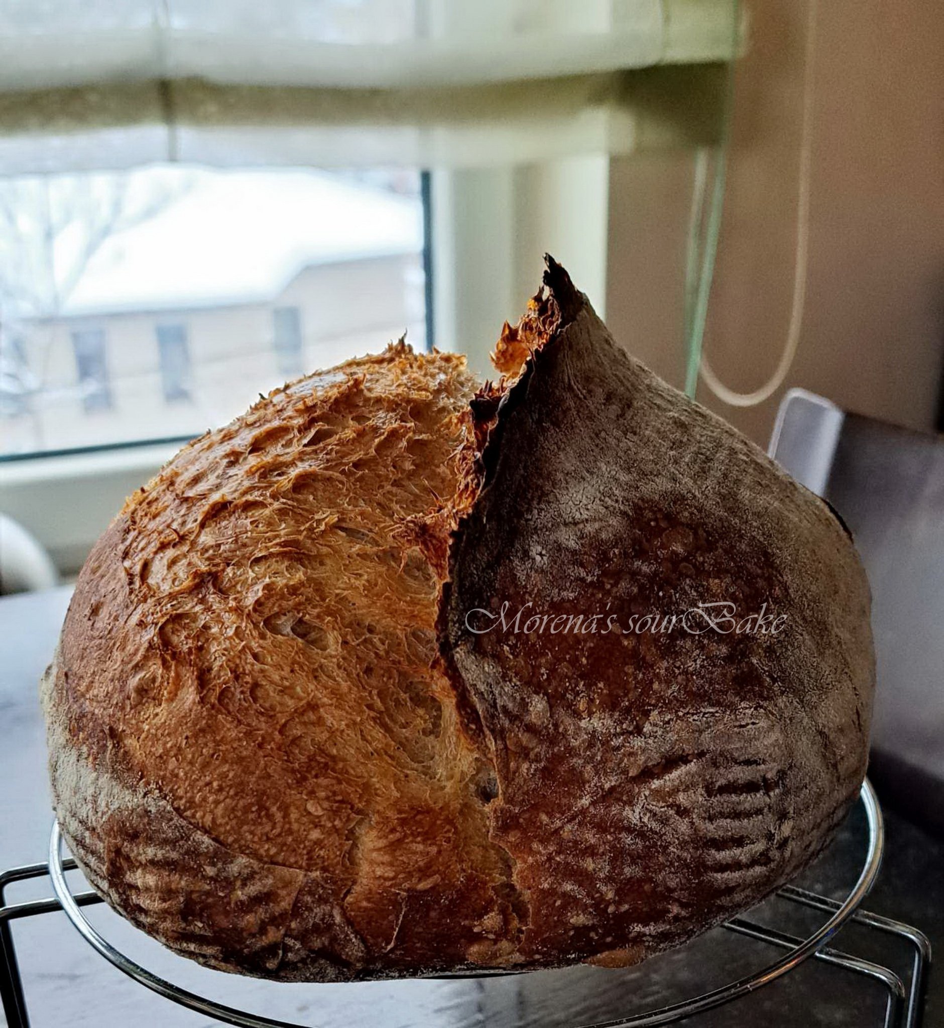 Един набързо забъркан дуньо от вчера. Направих го от останалата закваска от захранването на моя квас вчера. Захранвам кваса си веднъж седмично. Нарочно няма голям гребен, защото не го харесваме.