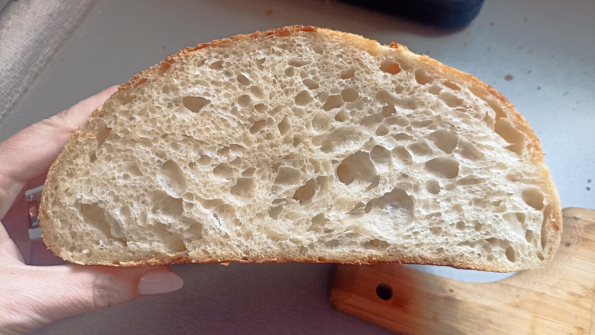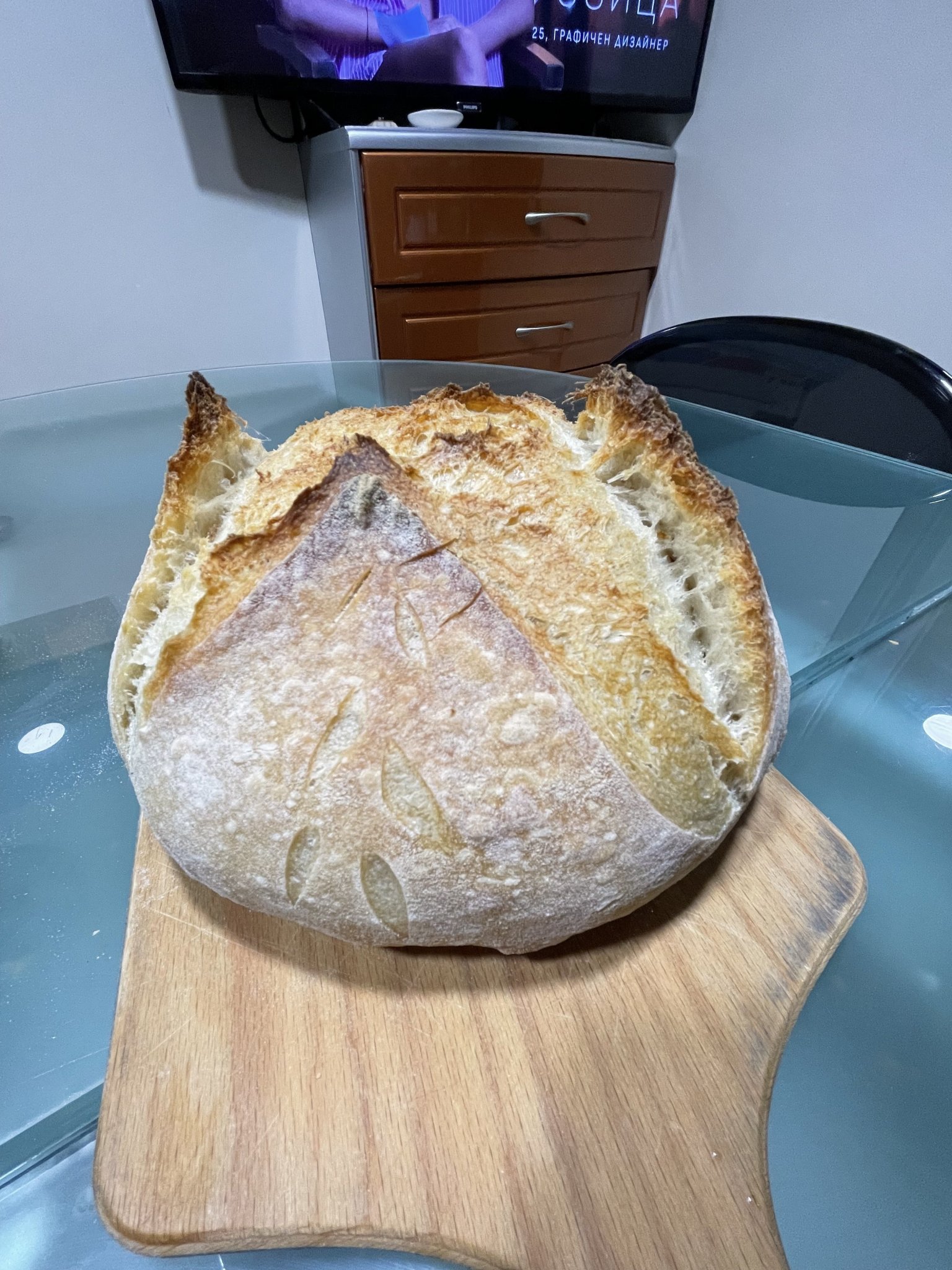 Prime, чудесно хлебче, браво! И още браво, че си го срязала както е подходящо за кръгъл хляб, та си получила оптимално отвяряне. Гледам че  много хора режат като за овал, па макар и кръгъл хляб да правят. Disappointed