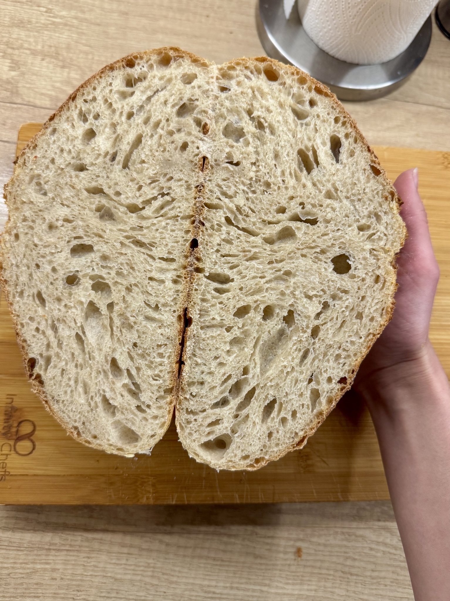 Привет от един новак в правенето на хляб !Чести Лазаров ден на всички.Отгледах квас и е на почти 2 месеца гледан на плота хранен на 12 часа ,следвам всички стъпки автолиза ,омесването ,превъртането ,следя температурата в помещението фурната ми е с пара 240 -20 мин с капак  и 220 без капак 20 Мин .Брашно София мел за пица .400 брашно 80 квас 280 вода няма кисел вкус но някак е  жилав не стои като купешки по мек от вътре .Някъде бъркам и не разбирам къде !Много научих от Morena и всички вас знаещи и незнаещи Благодаря