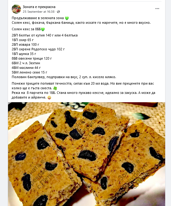 Напоследък опитвам да разнообразявам, като имам време. Сега съм запазила една рецепта за балансиран солен кекс в зелената зона и мисля да я пробвам.