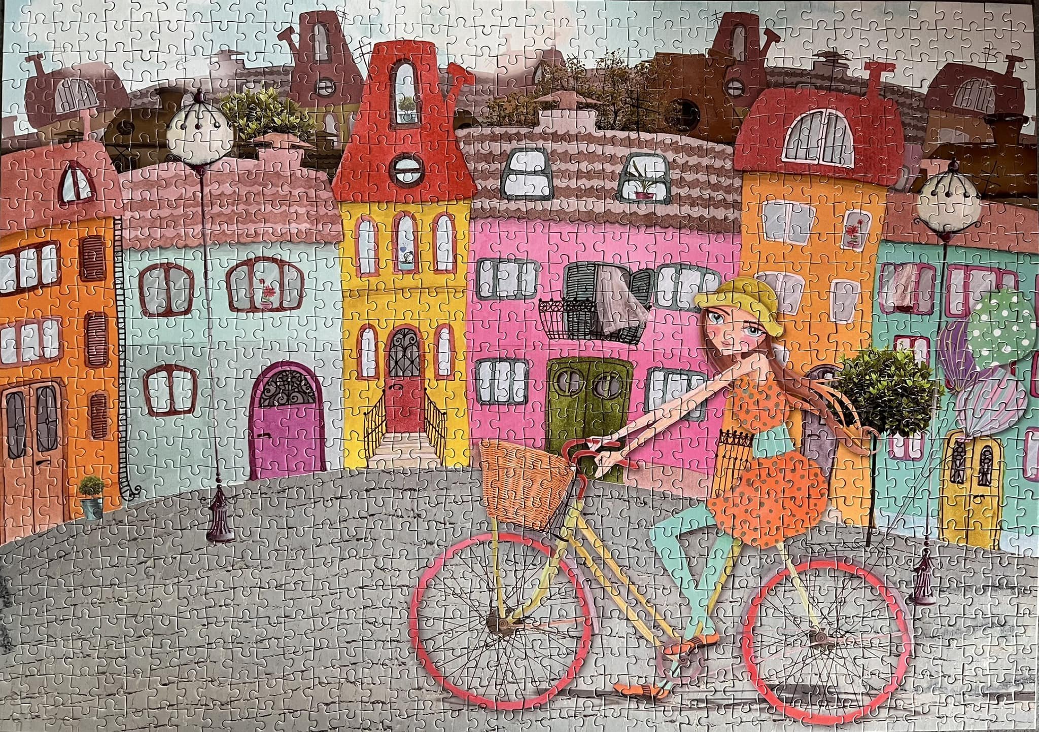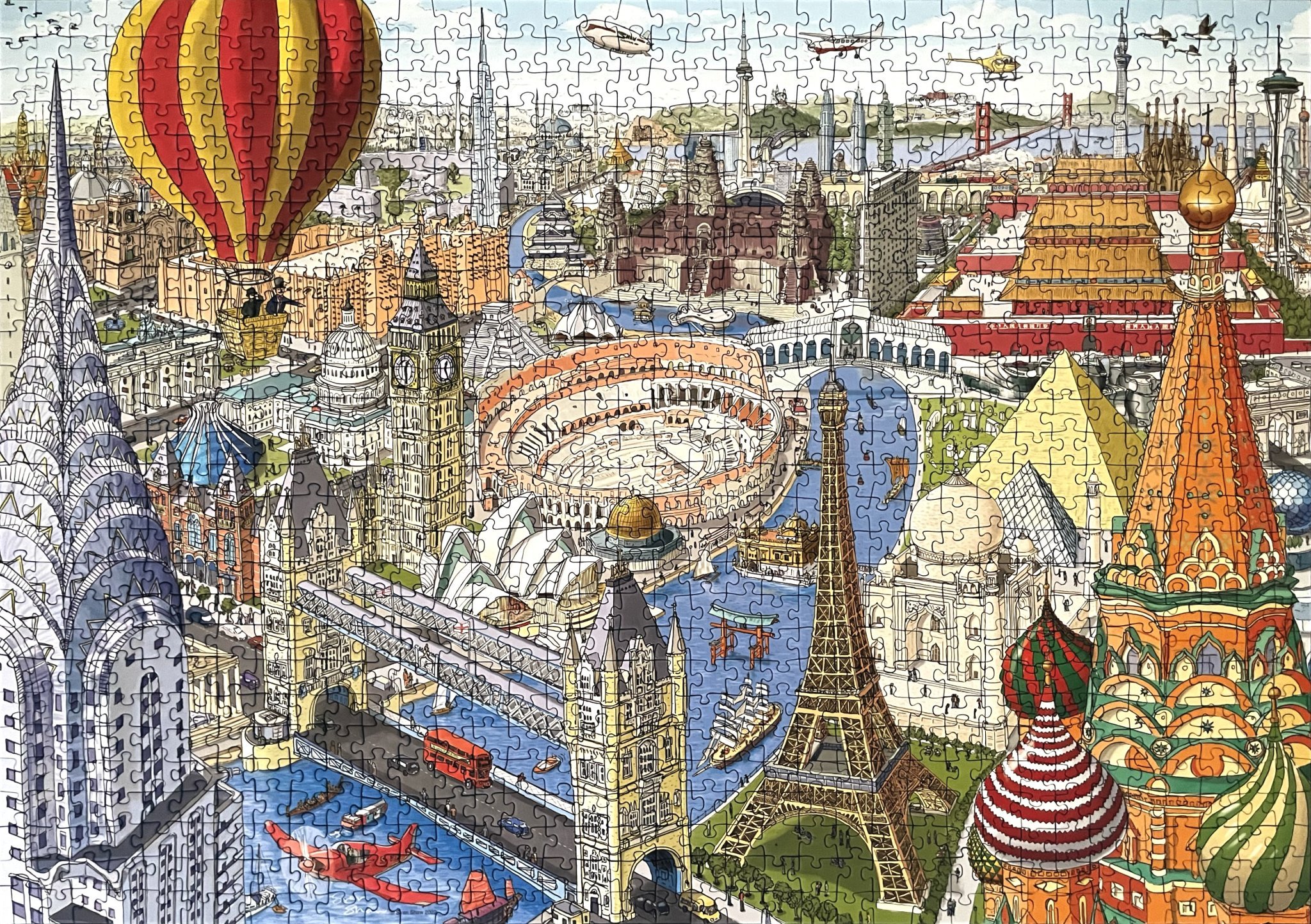 Аз започнах лекичко да тренирам за пъзелманията, като на първо място ми е да се науча да гледам картинката. За това разпънах този равенс с много детайли уж с идеята, че с толкова много сгради, няма как да не поглеждам от време на време. Е, пак не ми се получи, та май ще се откажа да правя опити.
