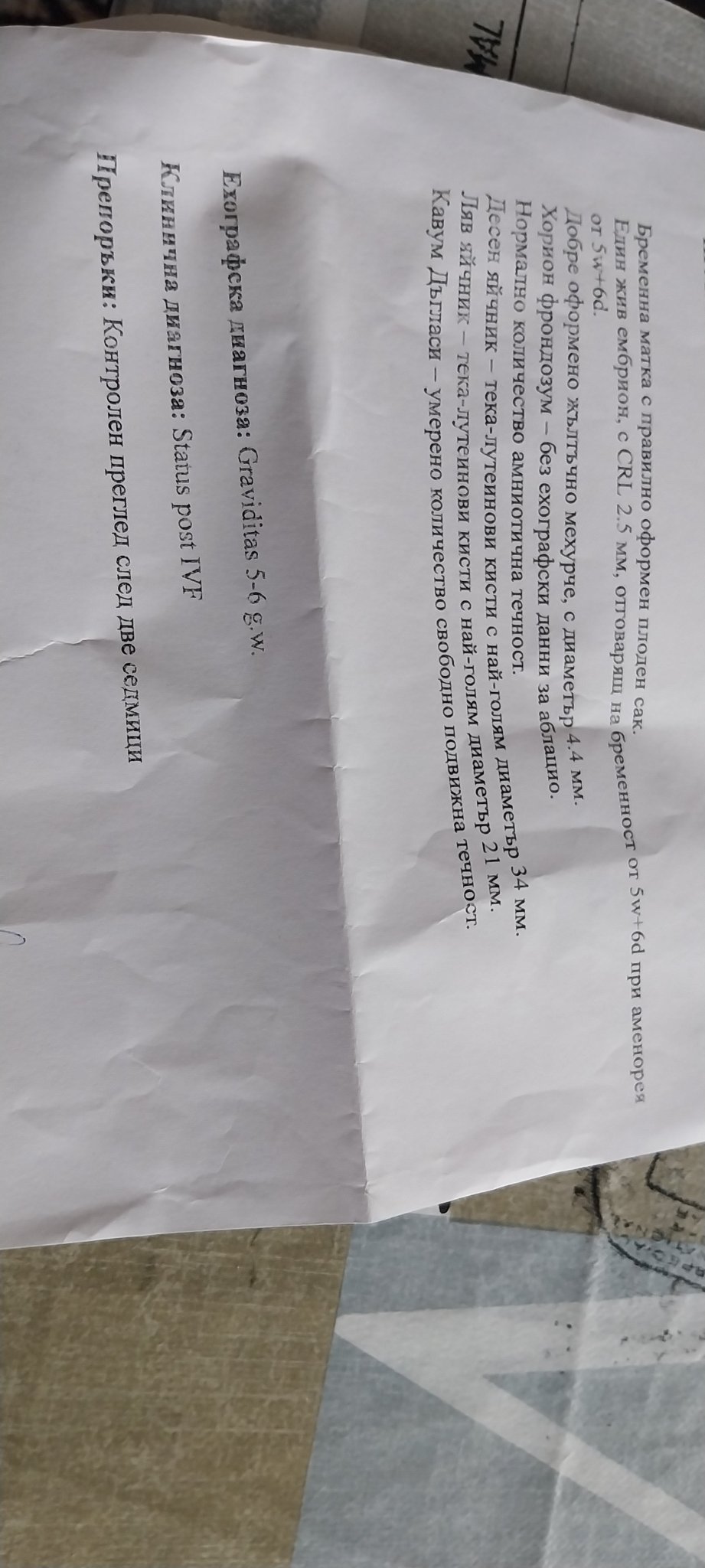 Ето листа от прегледа.На една страна е,но се чете😀.Аз защо ви казвам,че доктора е много важен.Искрено се радвам,че се насочих към нея.Имам й пълно доверие и без значение от крайния резултат,пак бих я избрала.