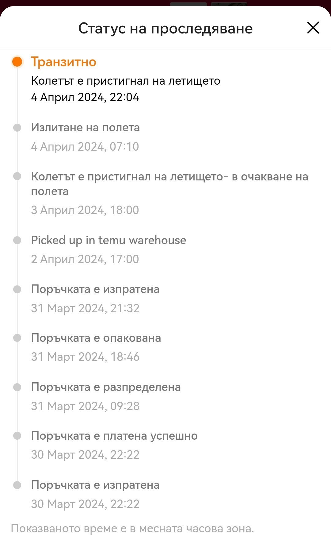 Моята поръчка от 1 артикул направена на 1ви, на 4ти април вече е в Бг и е на митница.