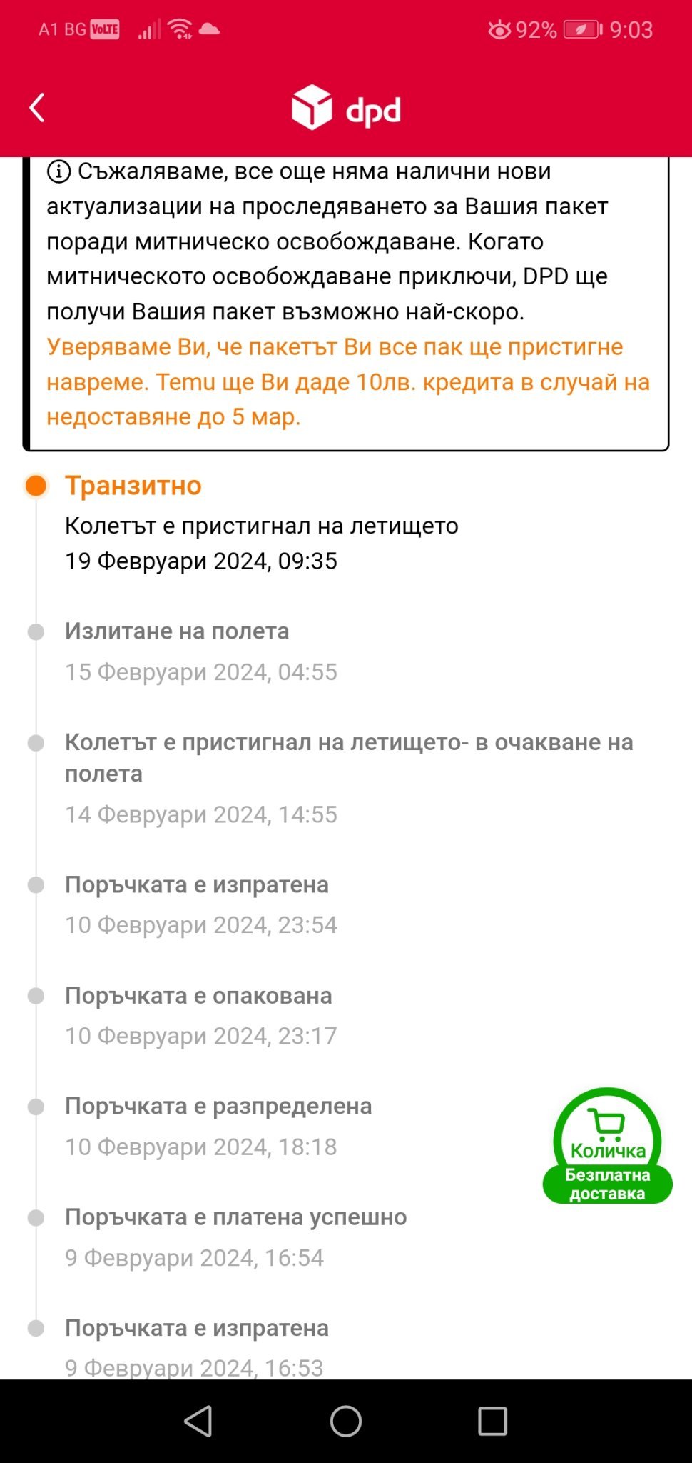 Ох, какво ли става с тази поръчка, не мърда Sad . Друг път поне пише, че е минала митническата проверка.