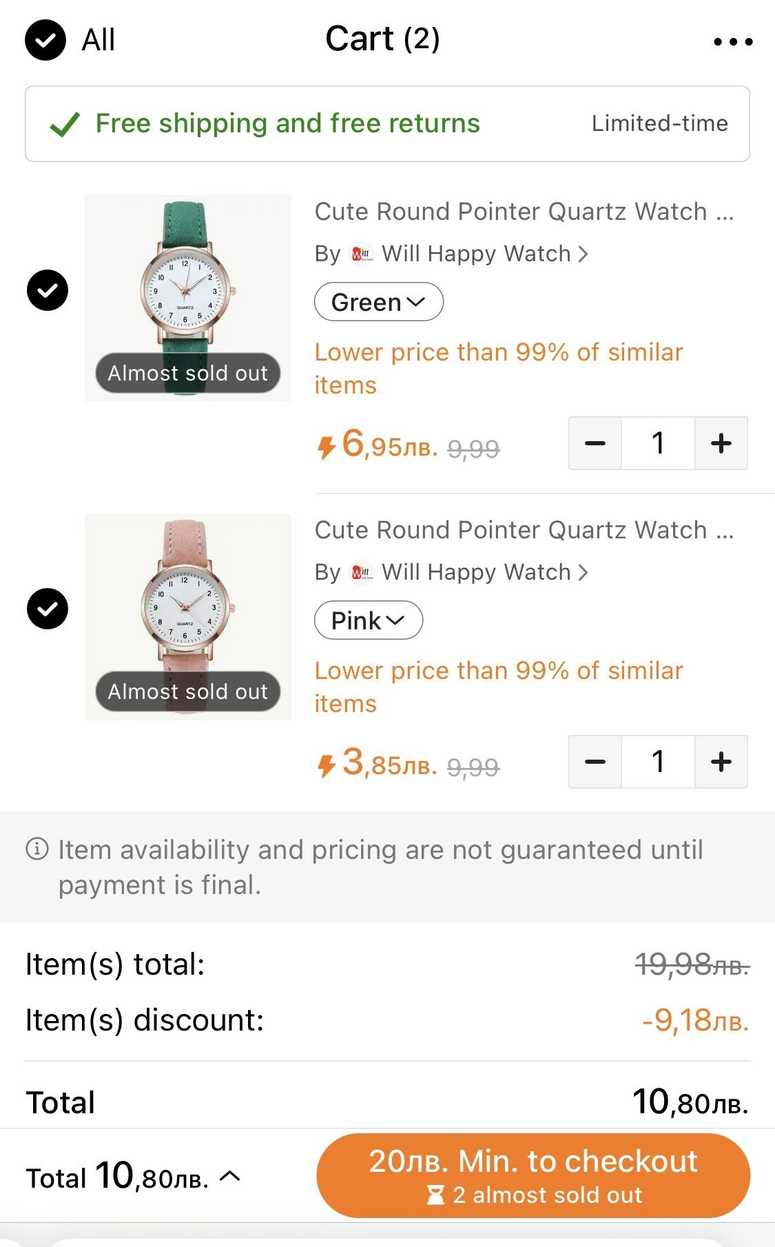 Mateah, за първа поръчка минималната сума ти е 20 лв. Мисля, че не можеш да поръчаш под тази сума. То винаги се изписва колко е минималната сума. На мене минимумът при първата поръчка беше 10 лв., а за следващите поръчки е 30.
