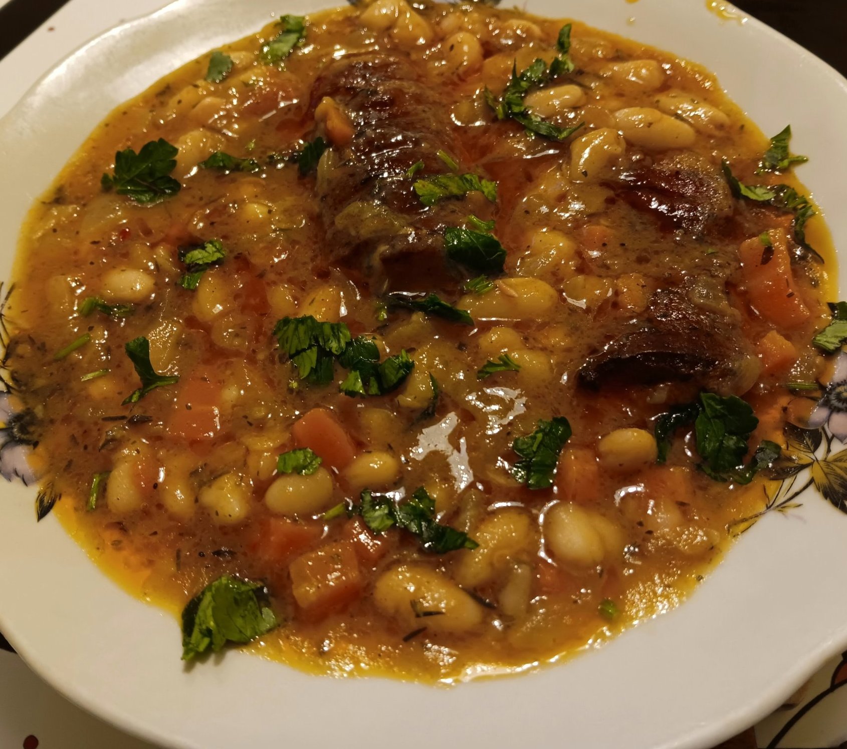 боб с наденица на фурна