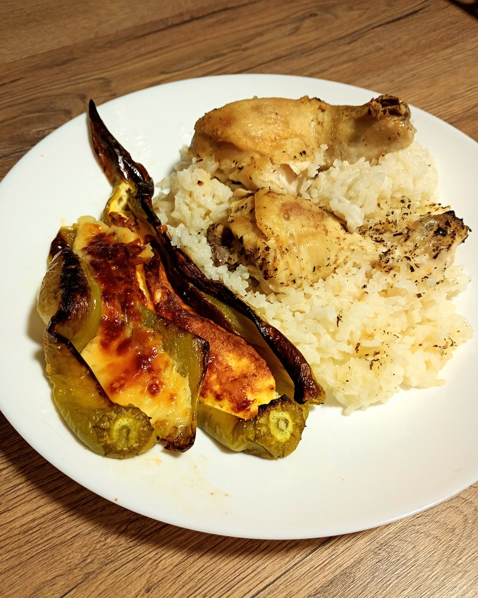 Пилешки бутчета във фрайъра и за гарнитура картофи със сирена на фурна