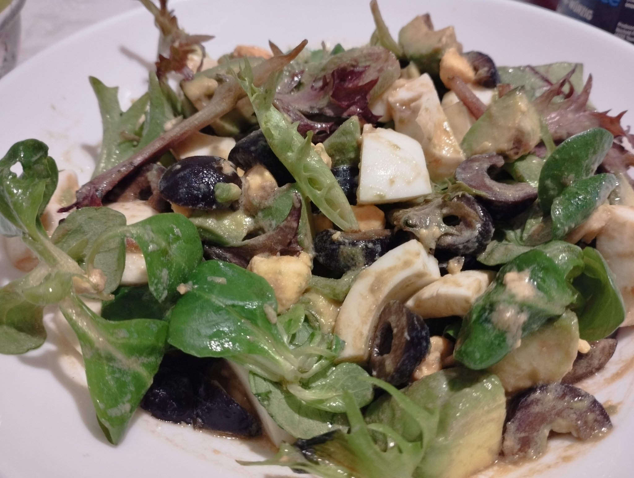 Бри в кори за баница с черничево сладко и салатка от авокадо, маслинки, яйце и сирене.