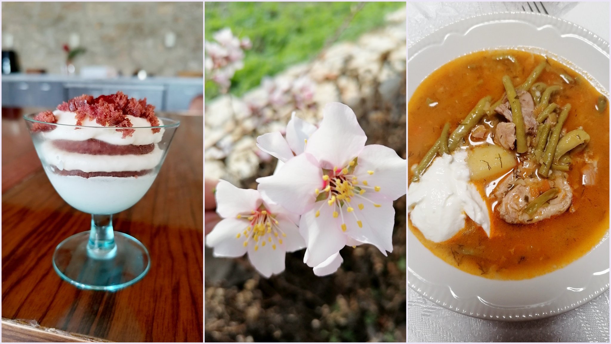 Вчера щъках из градината, сяхме това-онова и снимах цъфнали бадеми, а после спретнах една тенджера зелен боб с картофи и свинско, да има и за днес.