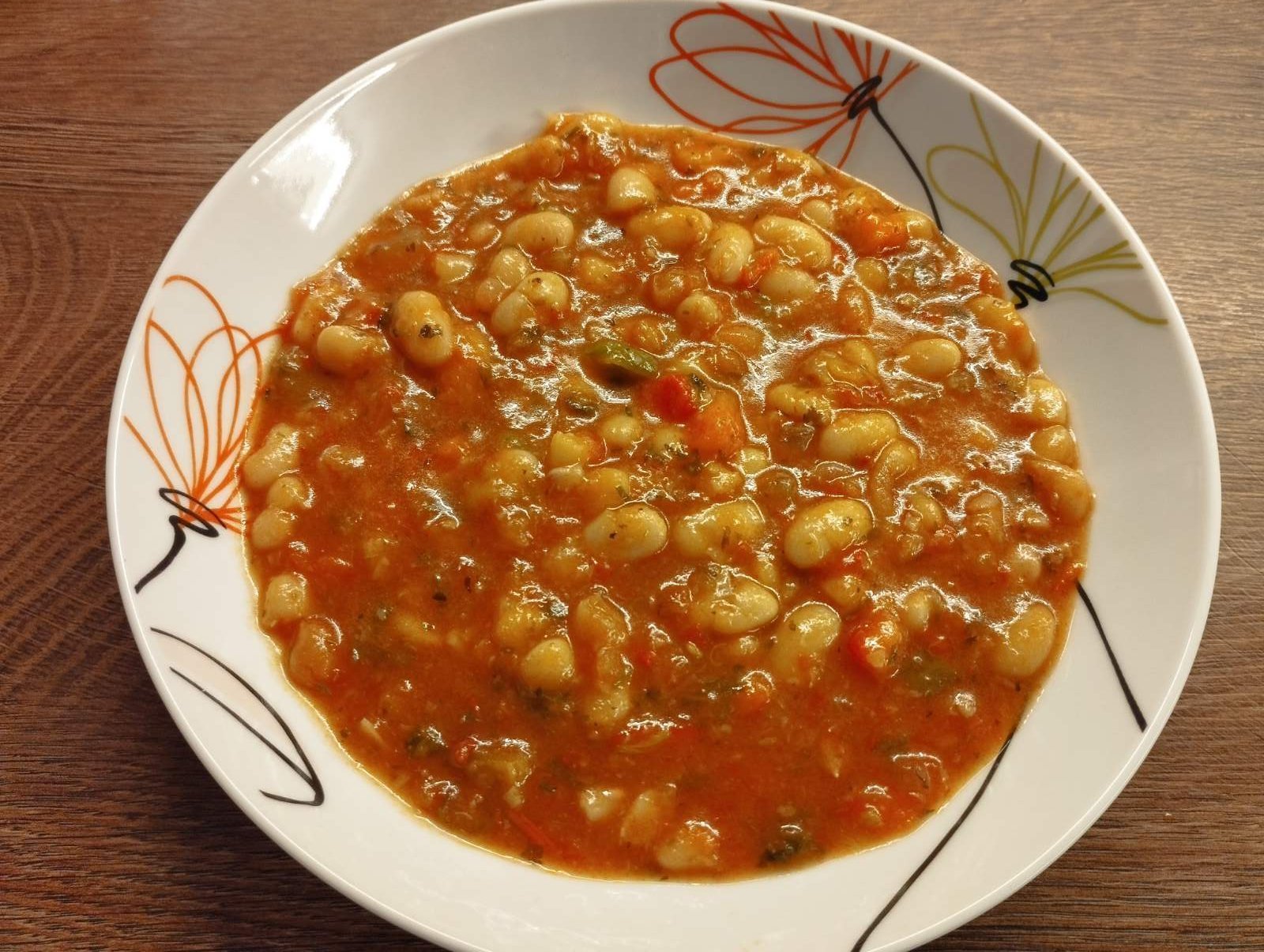 Започвам с пържени бъбреци, печени картофи и домати от буркан.