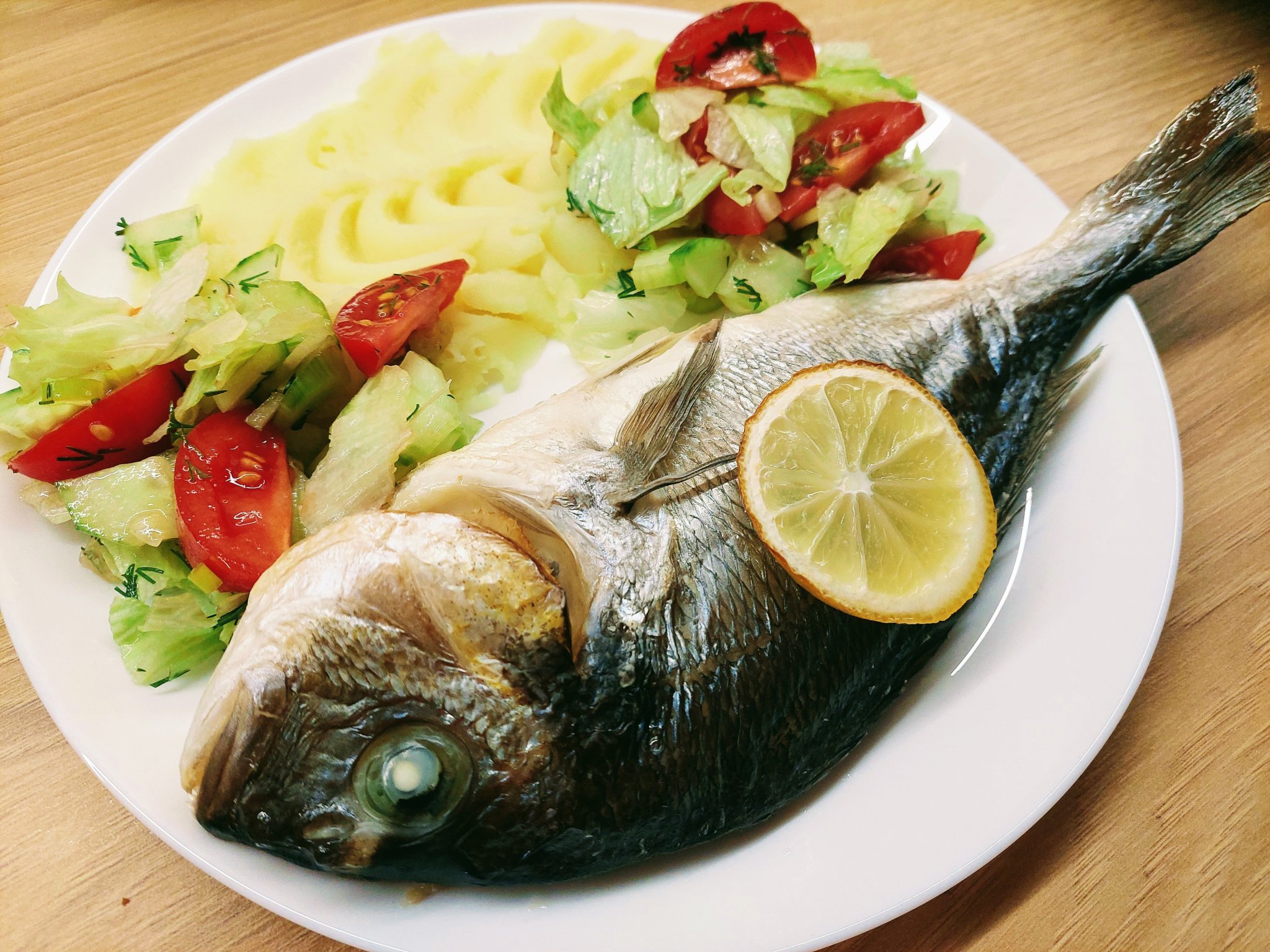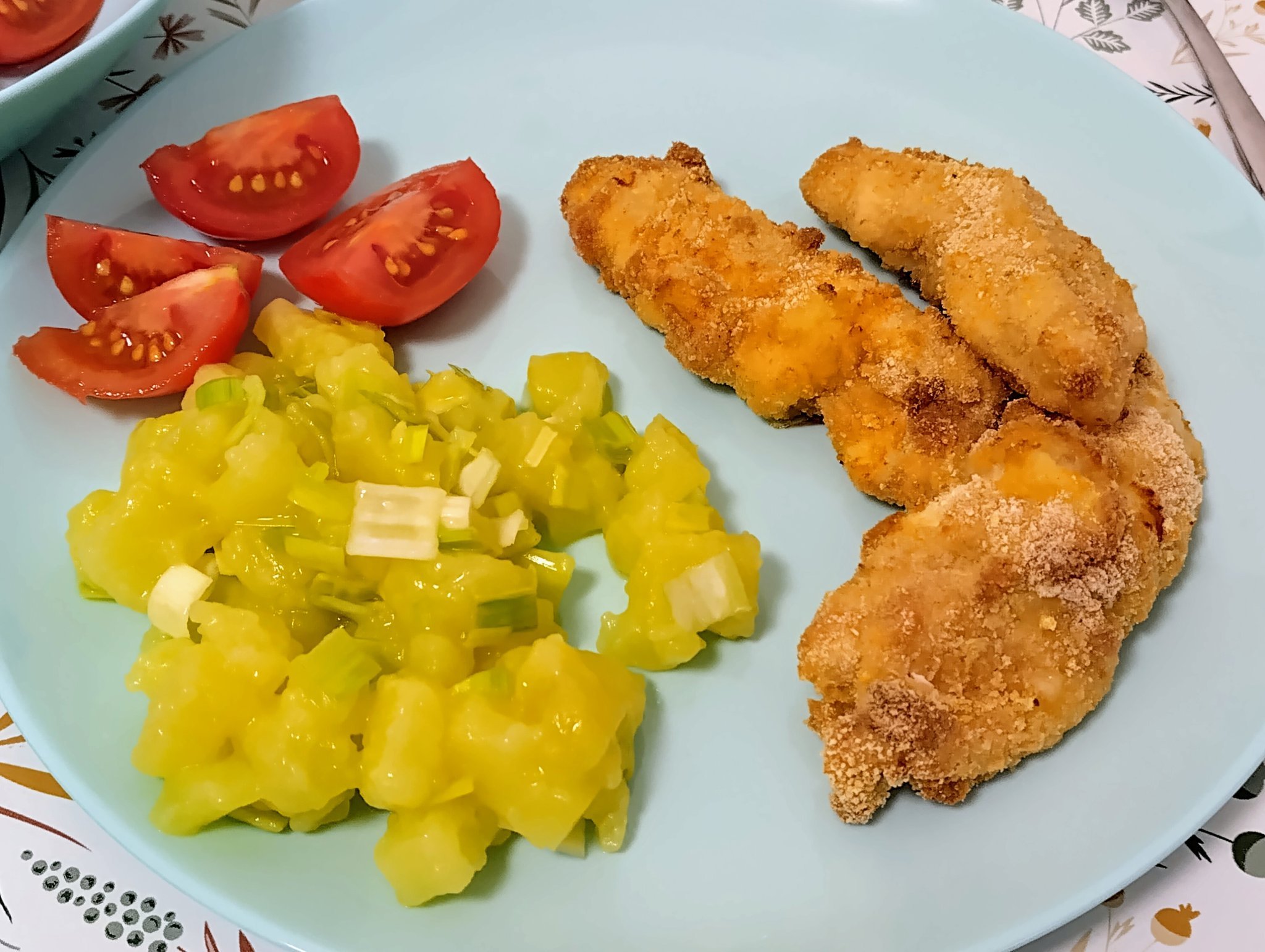И за вечеря топла картофена салата с праз и пилешки филета на фурна