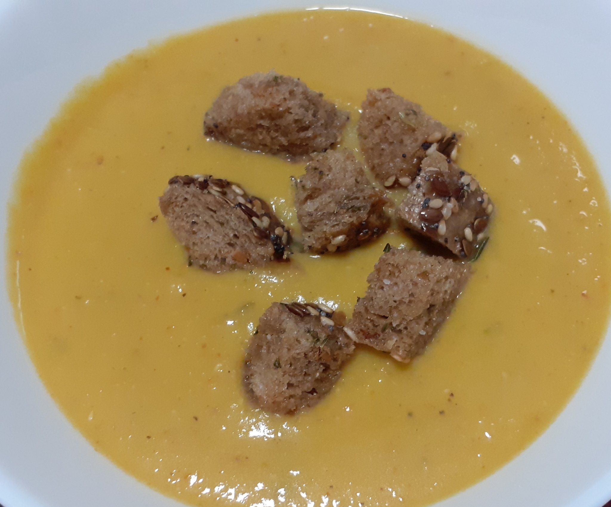 Много вкусна крем супа с тиква по рецепта Йоли приготвих днес. С кадифена текстура е и е много ароматна. 😋🥣🎃😍
