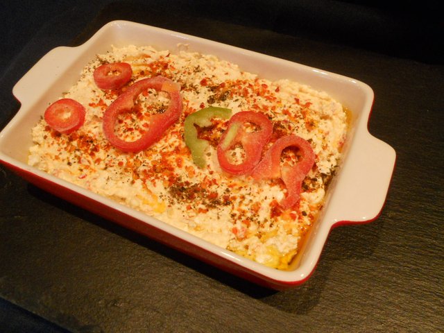 Нещо от интернет -настъргани картофи, кайма и сирена
