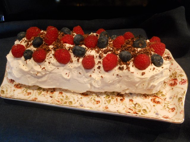 ЛЯТНО БИШКОТЕНО РУЛО С МАЛИНИ И СМЕТАНА , лятно, но сега ми трябваше и малини имаше, така че набързо го забърках, забравих листа мента да добавя, нищо те го изядоха и без ментата