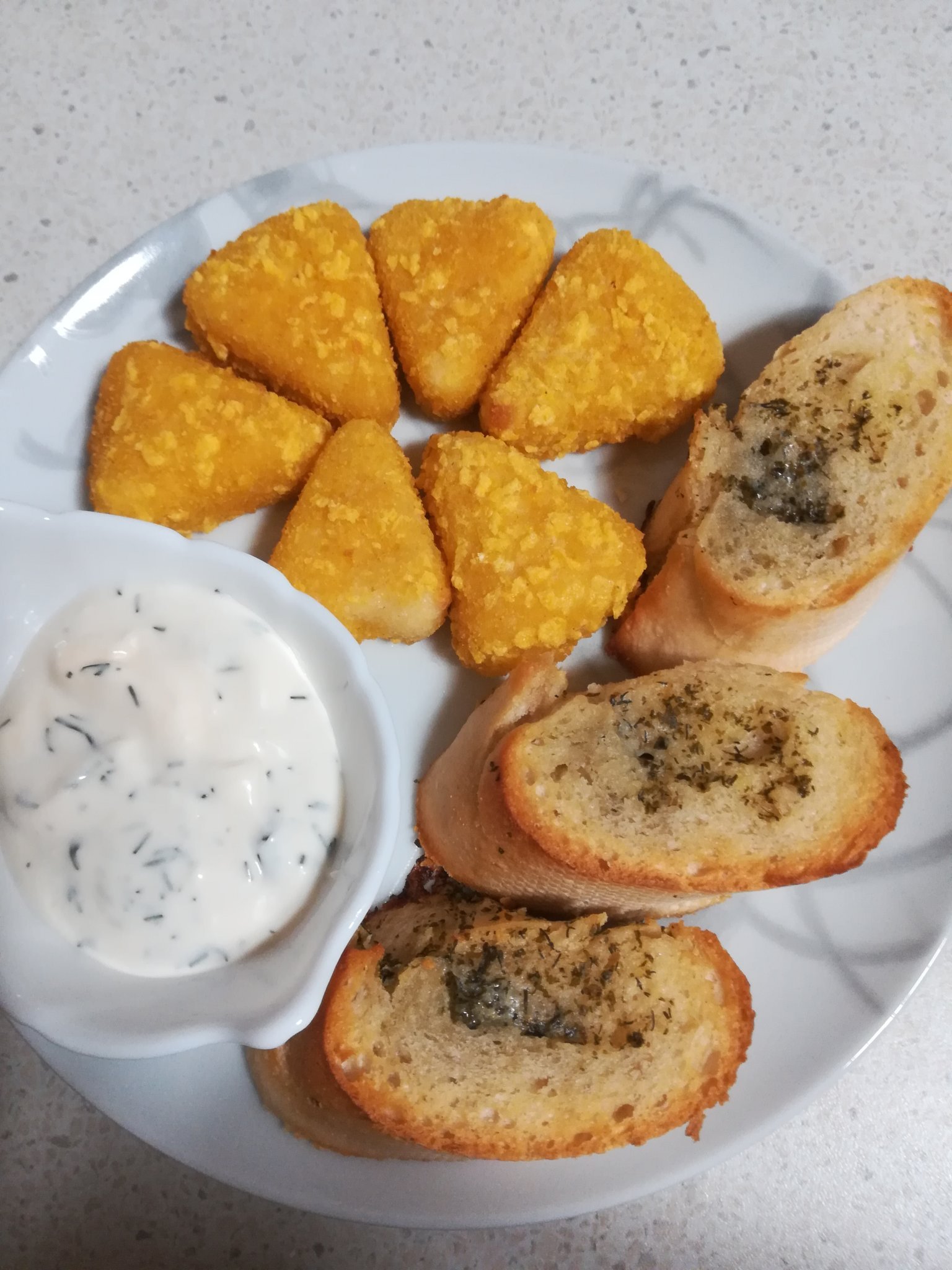 Паниран кашкавал (най-сетне намерих перфектния кашкавал за целта, който да не стои, като гума и да не се разтича, докато се пържи.)