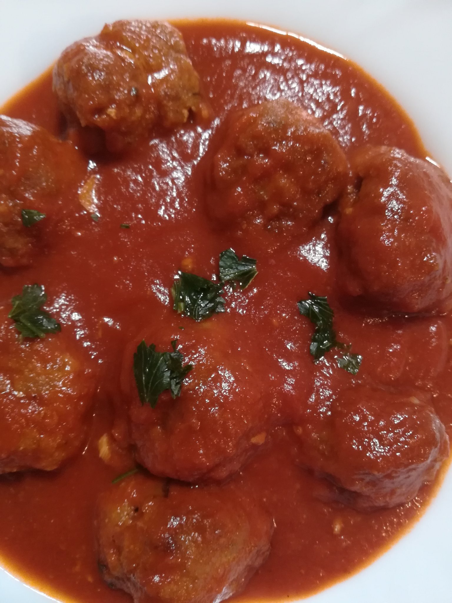 Кюфтенца с доматен сос. Да не изхвърля купешкия сос останал от лазанята.