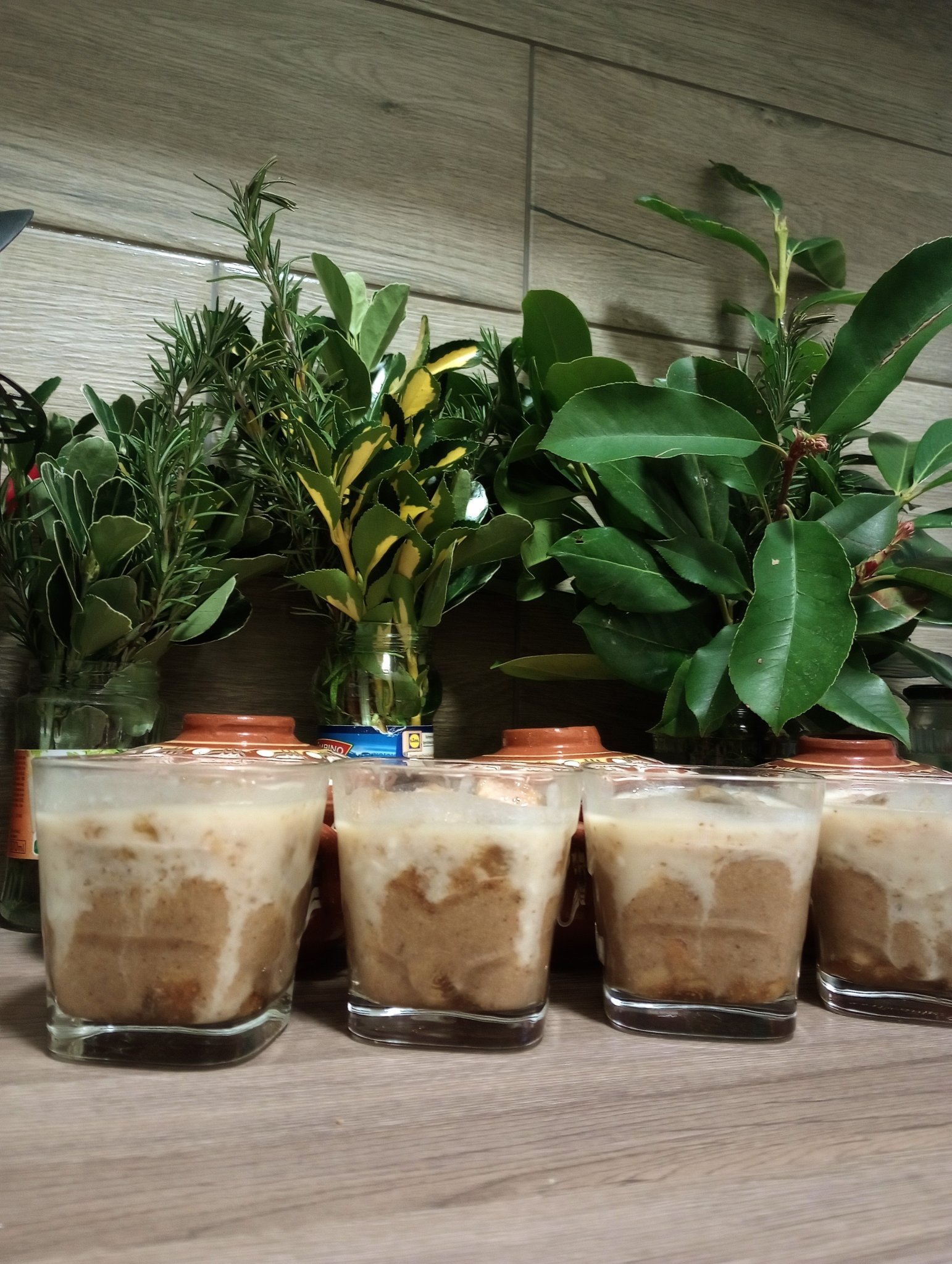 И десерт в чаша - пандишпан, млечен крем и сладко от смокини