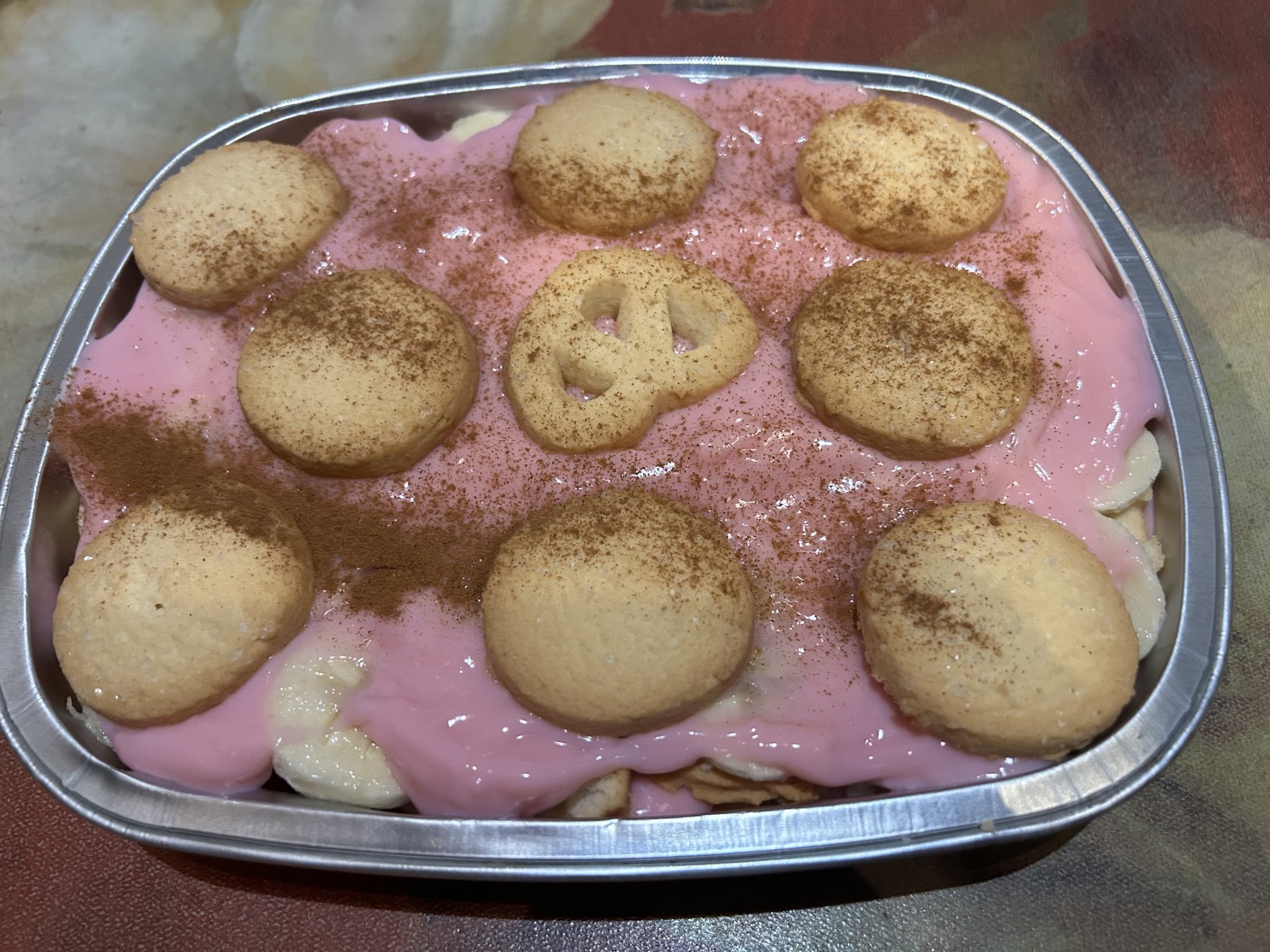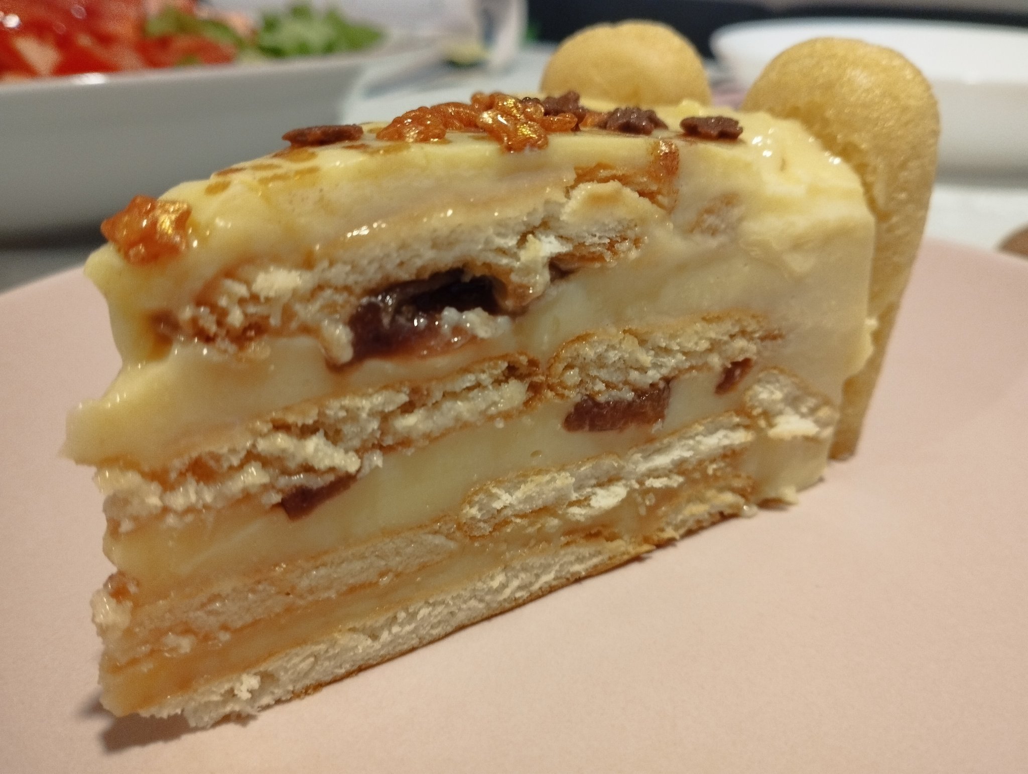 Бисквитена торта с банани в кутията, за последващи закуски пак за него.