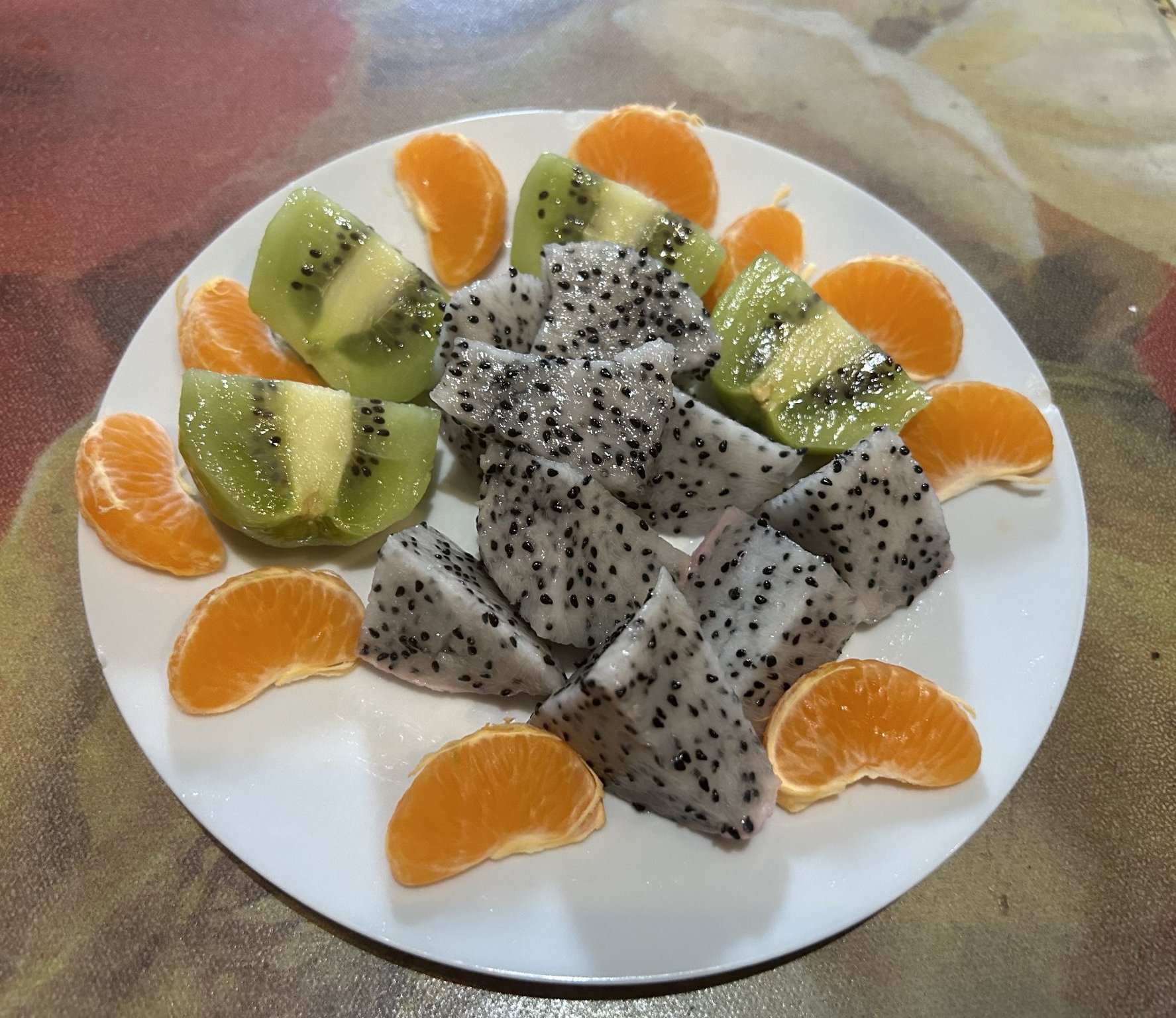 И синът поиска плодове преди закуска - киви, мандарина и драконов плод.
