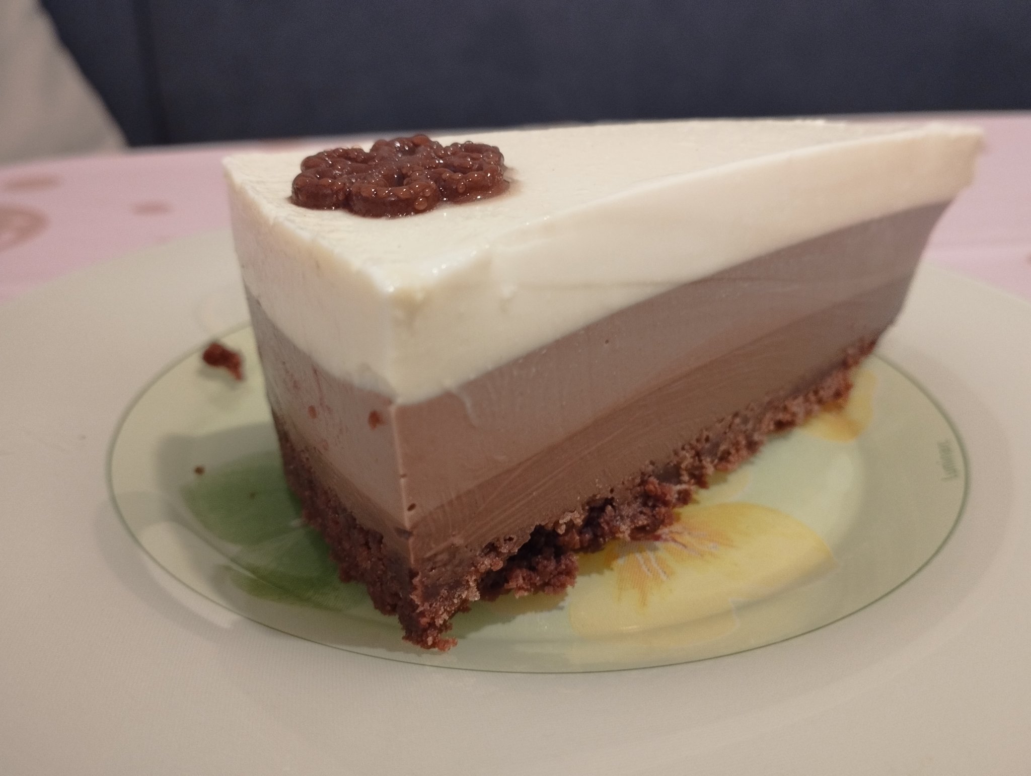 Отново тришоколадовата торта, този път и разрез, страааашно вкусна.