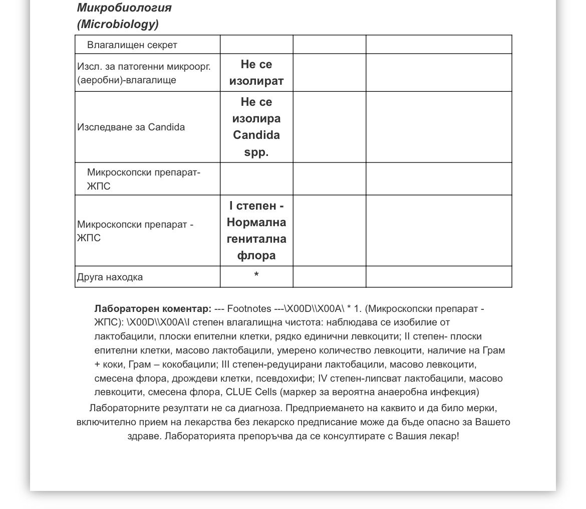 Да разбирам, че 1-ва степен е супер? Никога на МБ не ми е излизал такъв резултат и съм изненадана. Че и лактобацили си имам и бактериалната вагиноза я няма и то само от един курс с лечение😃