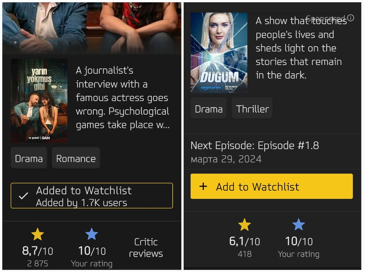 Във ВК за Халит и Бергюзар видях рейтинга на СНУ в IMDb...