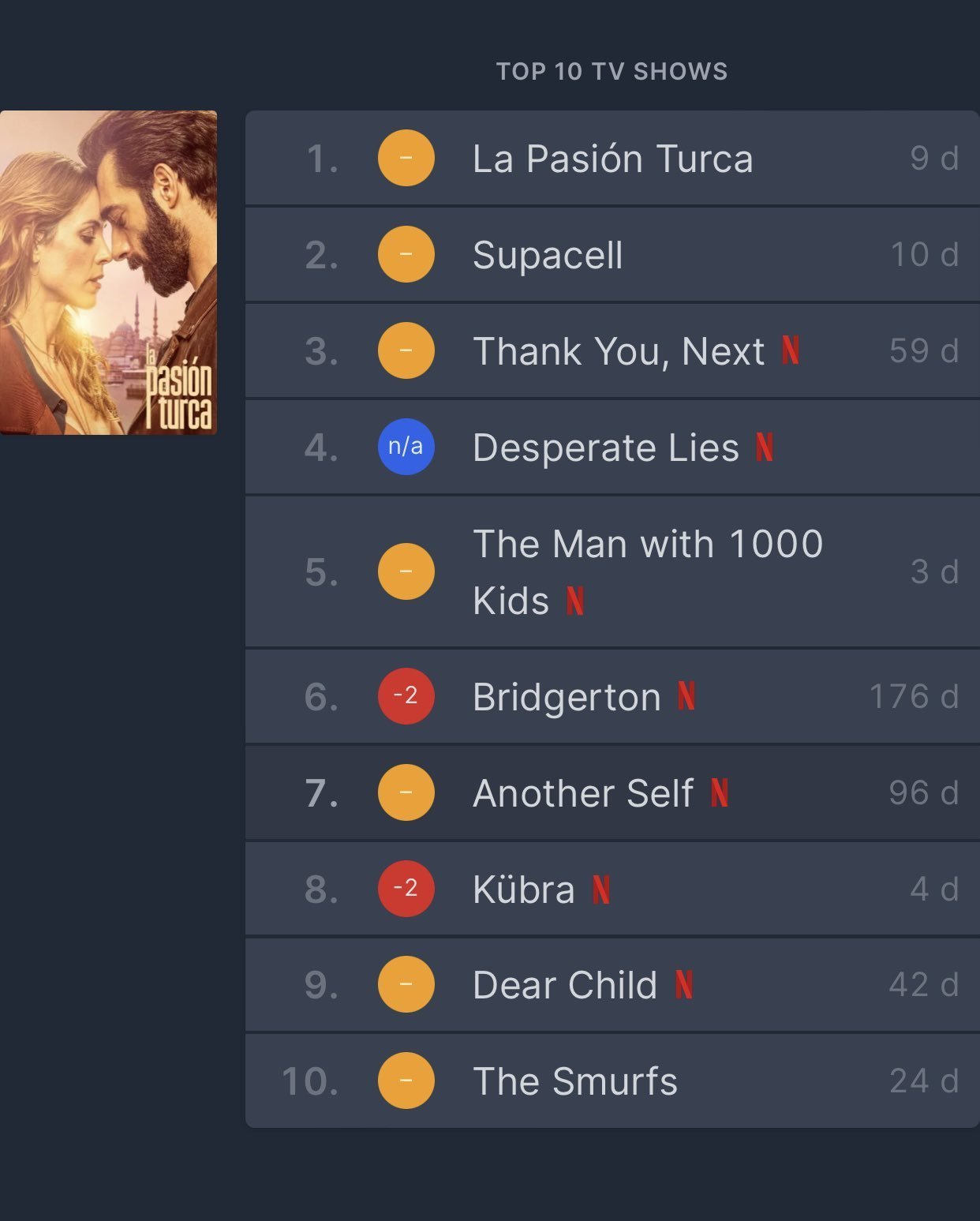 Сезон едно от вчера е в топ 10 на Нетфликс Турция, на седмо място е.