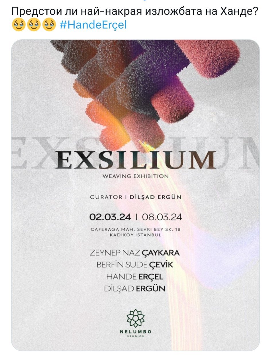 Изложбата явно ще е държавният изпит на Ханде и колегите ѝ. Интересно ще ми е да я видя. Дано качат повече снимки, а не само на нейната творба.