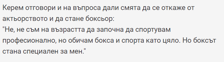 Попитаха дали Керем гледа някакви проекти по телевизията, на което Керем отговори, че изобщо не гледа телевизия, за разлика от майка си. Тя гледа.