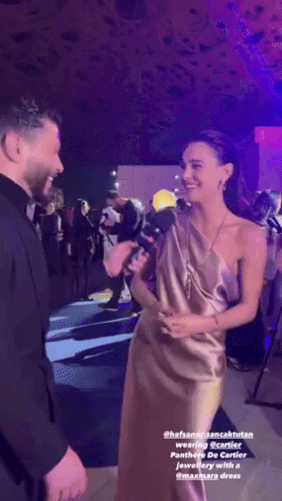 Хафсанур Санкактутан, едно от първите имена, с които Cartier си сътрудничи в Турция, присъства на откриването на изложбата на марката луксозни бижута в музея Лувър в Абу Даби. Sancaktutan избра рокля на Max Mara и бижута на Cartier, с редакторски директор Işık Шимшек."