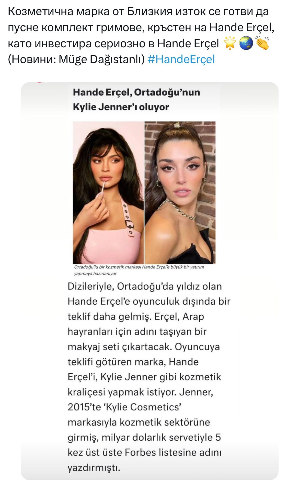Бирсен преди малко е пуснала статия, в която потвърждава партньорката в новия проект на Керем.