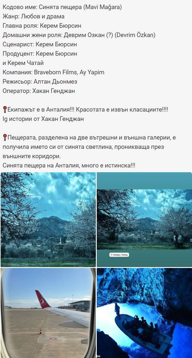 Твърди се, че снимките по филма на Керем "Синята пещера" ще стартират на 30 март. Ето тази синя пещера, която ще бъде в основата на филма.