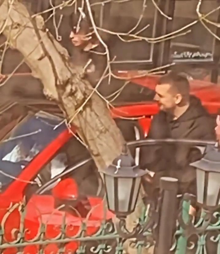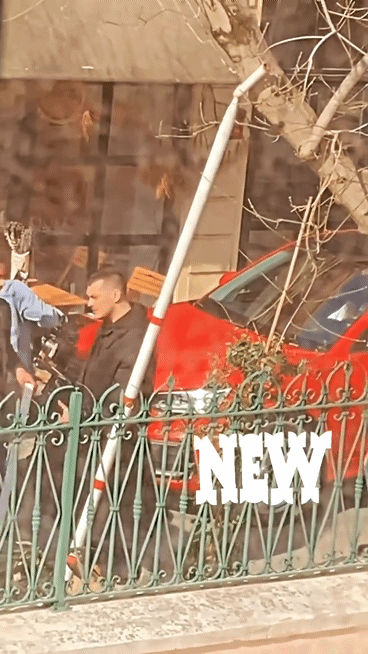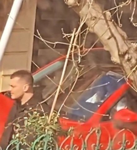Доста народ има наоколо, със сигурност е от сета.  И тези дрехи, с които е облечен са от сериала.