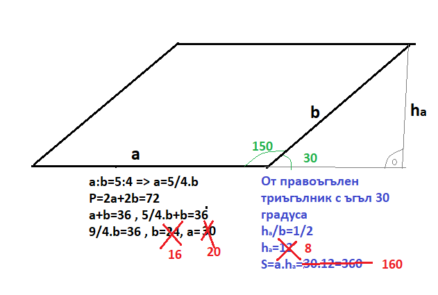 Успоредникът има периметър 72. Как едната страна я изкара 30, а другата 24 Sunglasses