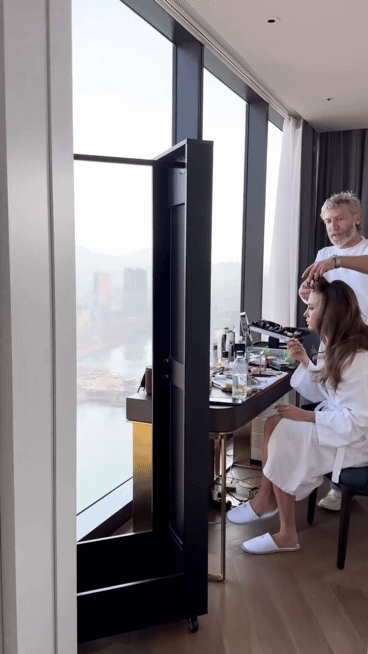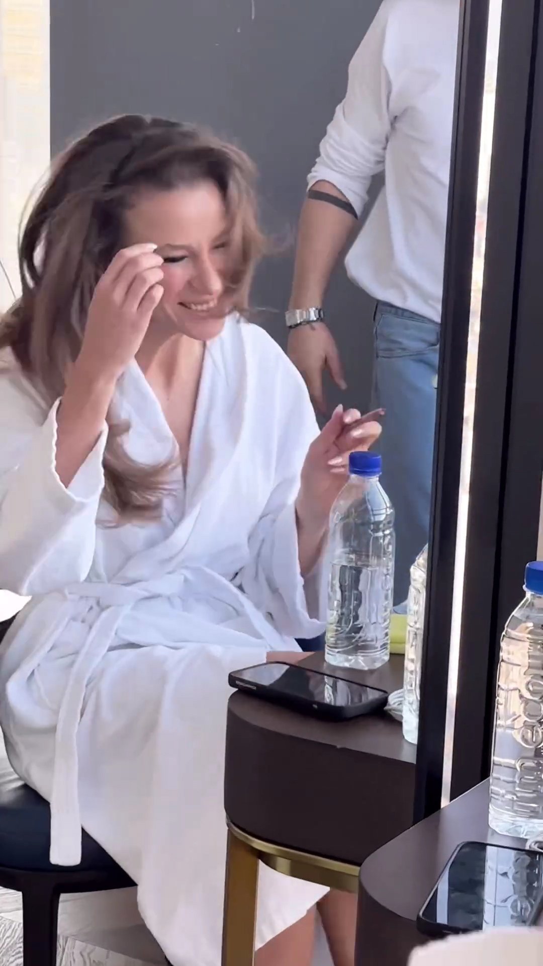 начинът по който са прибрали косата й на мен ми харесва, в унисон с целия стайлинг е. а и се акцентира на бижутата.