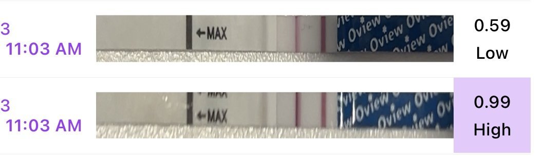 Днес ми е 12 ден от МЦ и последния тест е от преди малко. Вчера ми излезе пик и висока стойност, при все, че чертата беше доста по-светла от контролната.