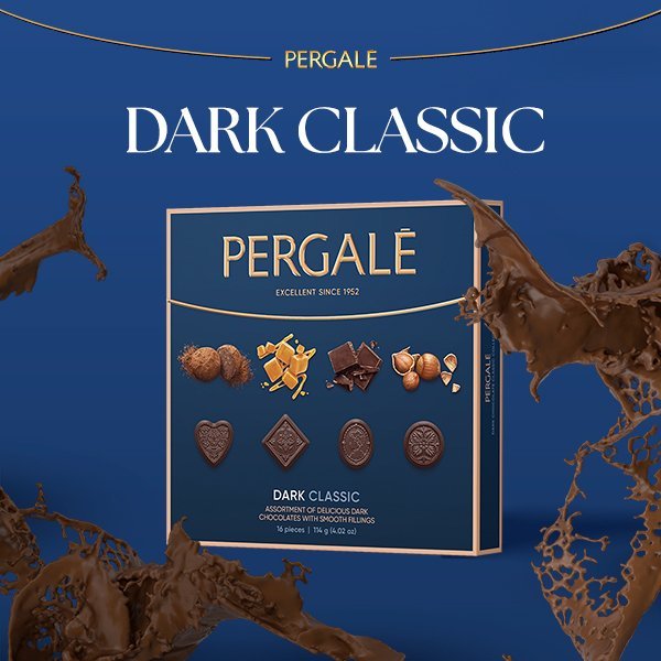 Днес представяме шоколадовите бонбони PERGALĖ DARK CLASSIC, които ще ви потопят в кадифената магия на черния шоколад: