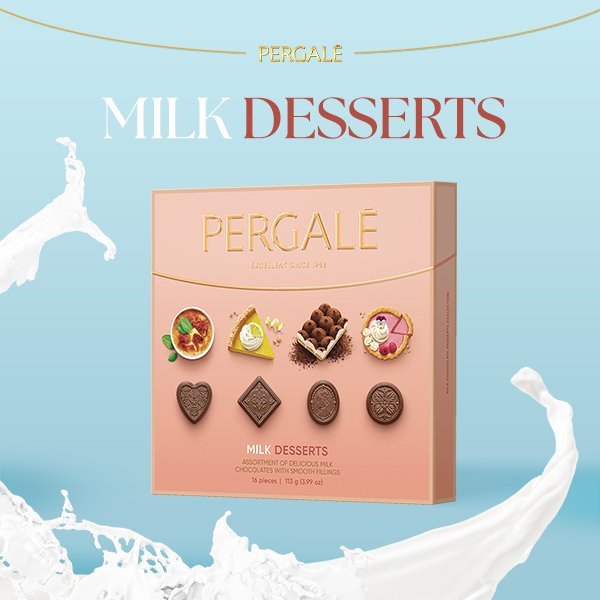 Днес PERGALĖ представя шоколадови бонбони PERGALĖ MILK DESSERTS, които ще задоволят и най-капризното небце и ще ви изпратят на вкусно пътешествие: