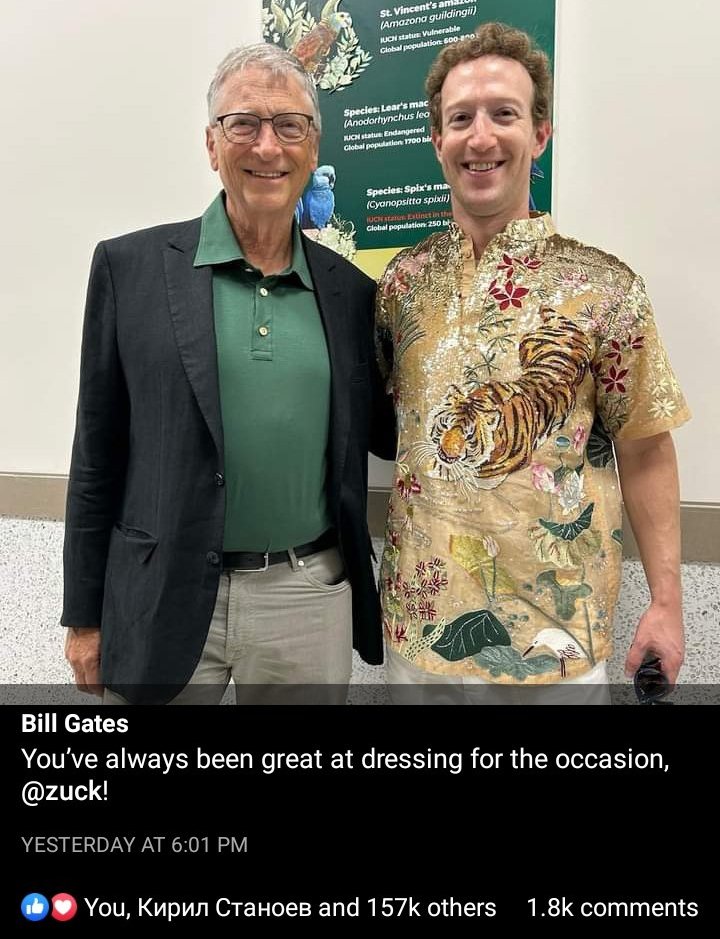 Бил Гейтс троли Зукърбърг за стайлинга му, това е от тържествата в Индия, много шикарна ризка😄