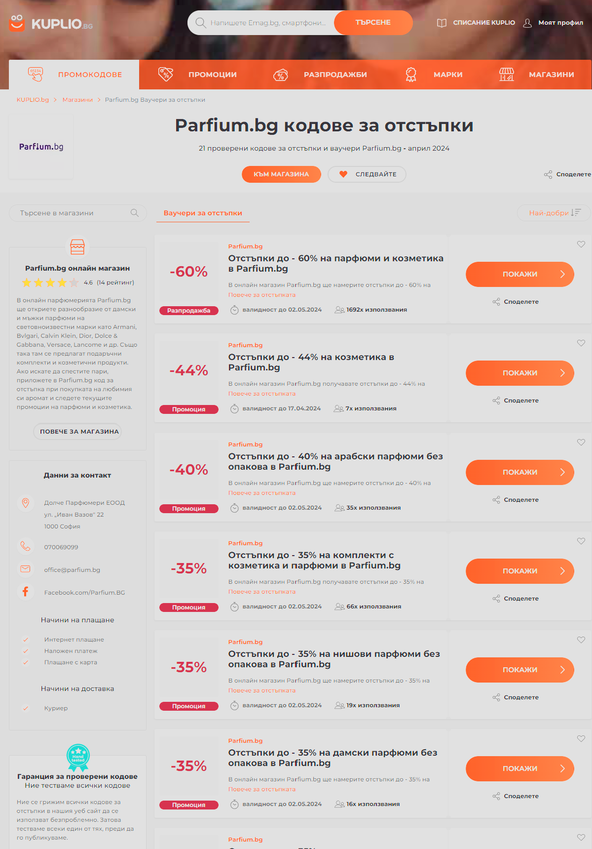 Изпитани сайтове за парфюми - март и април 2024