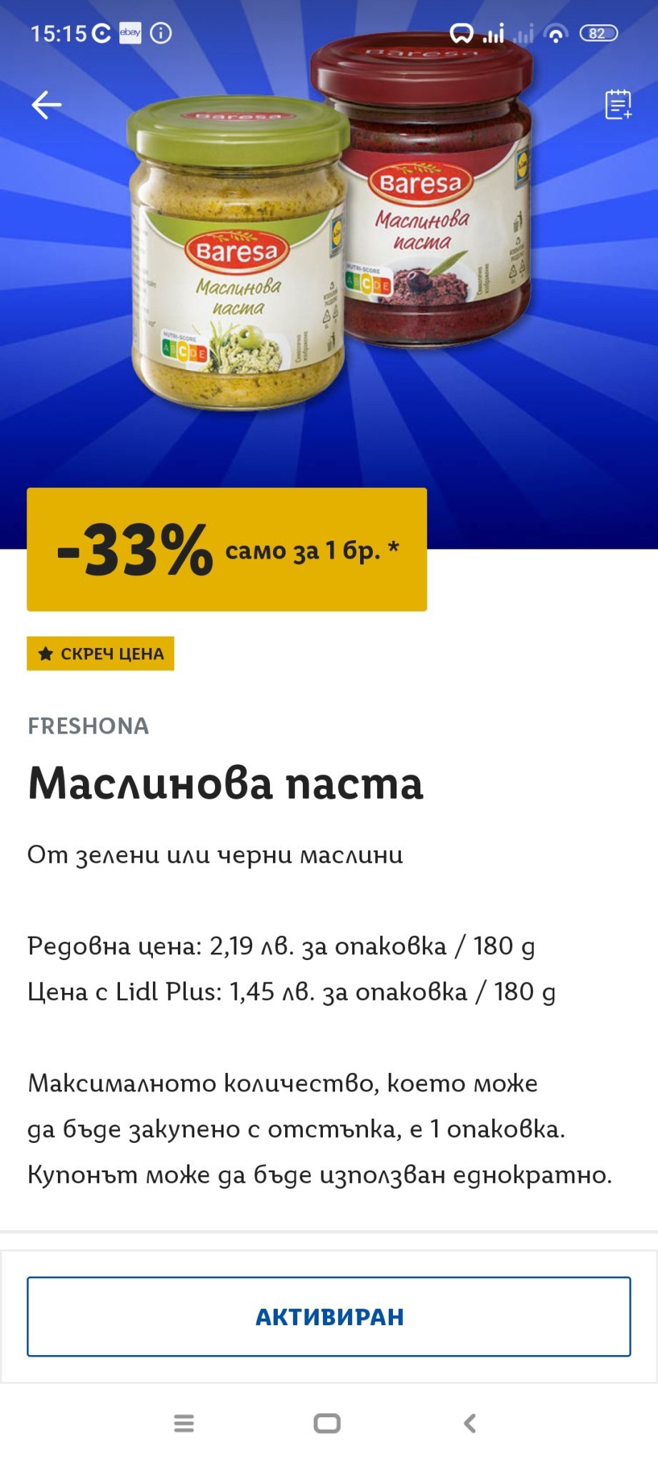 Купонът за маслините е до неделя.