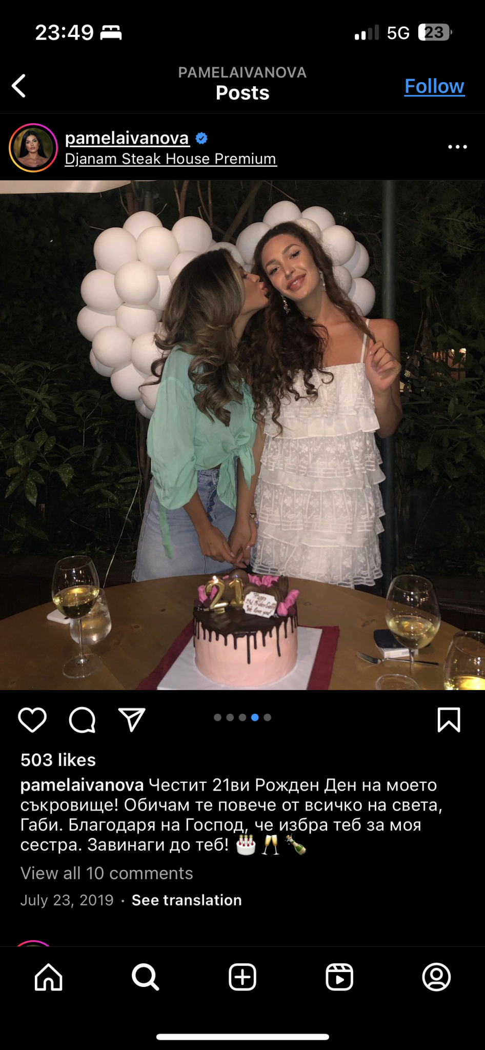 Габриел ме е блокирал и не мога да видя стари снимки в иг. Отворих профила на Памела. Има нещо много различно в лицето на Габриел. С филъри ли се е наблъскала сега?
