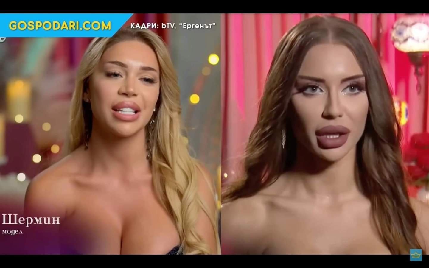 Шермин е доста по-добре направена. Мони чак не може да се усмихне нормално. Така и не можах да ѝ повярвам, че е правила само гърди и устни.