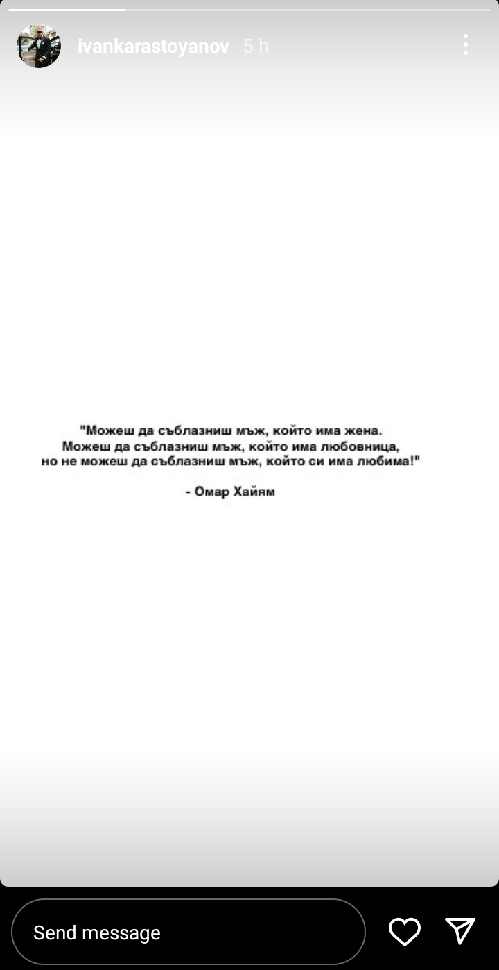 Относно Емануела и Иван, вечерта когато стана ясно че няма да са повече двойка във формата той беше пуснал това стори, с  което очевидно ставаше ясно какво се е случило между двамата.. малко по-късно той го изтри..