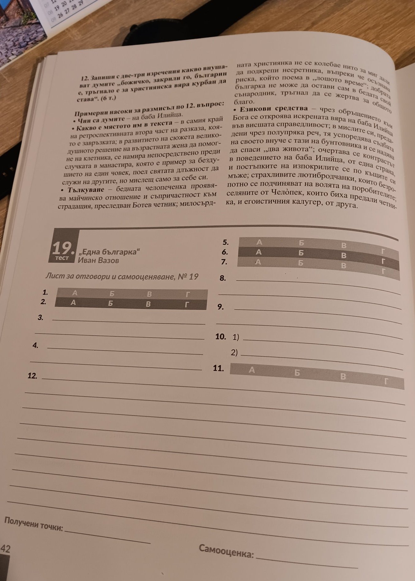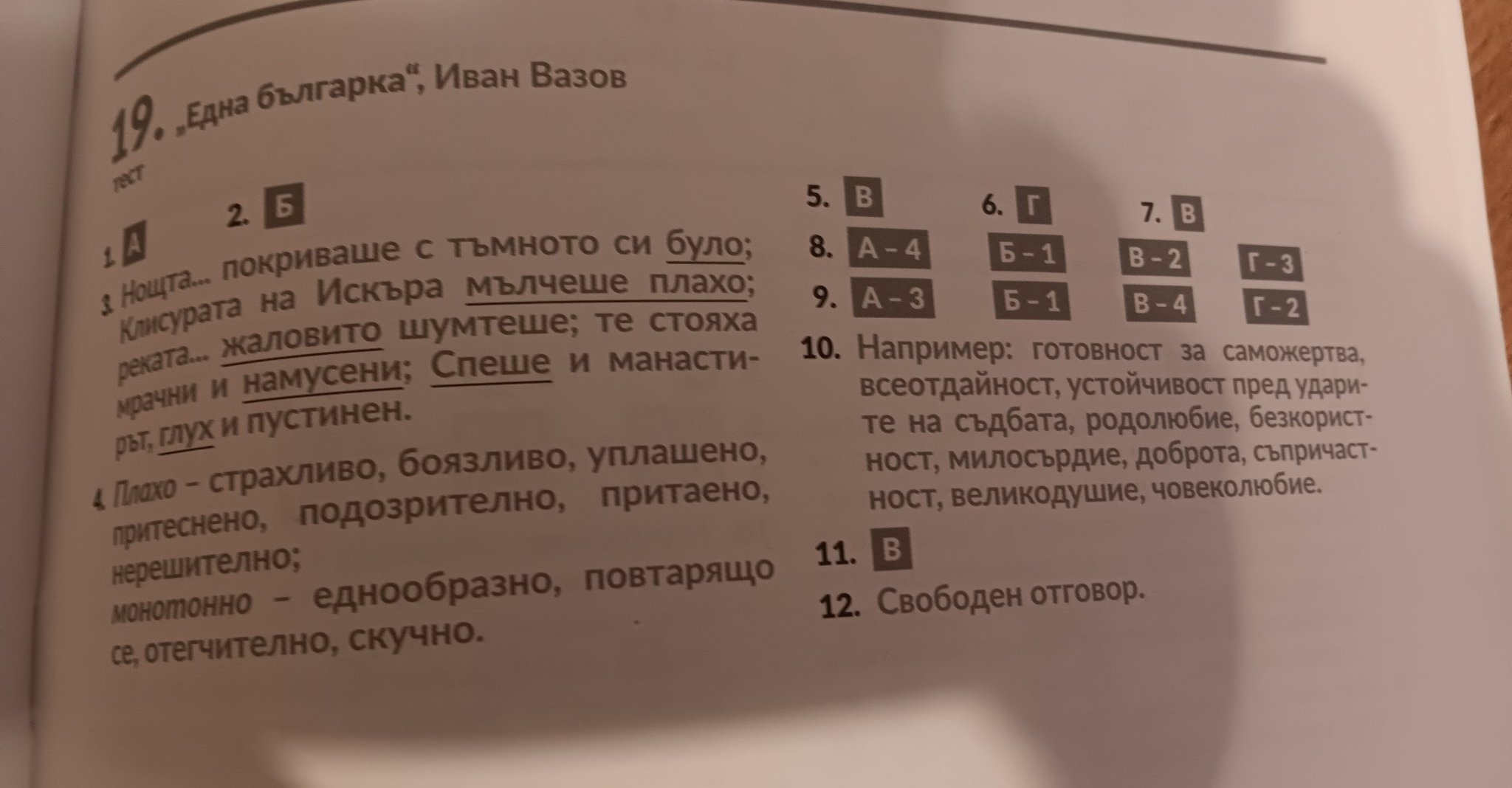 Здравейте да има някой тестове по литература за Една българка! Благодаря предварително!