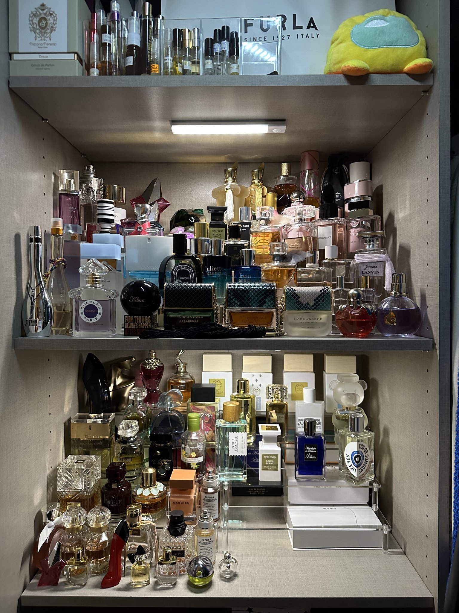 Чета ви няколко страници назад и гледам, че сте обсъждали кой как си съхранява парфюмите. Държа си ги в гардероба, за да са на тъмно. Моето решение засега е подобно на това на nevermoresleep.