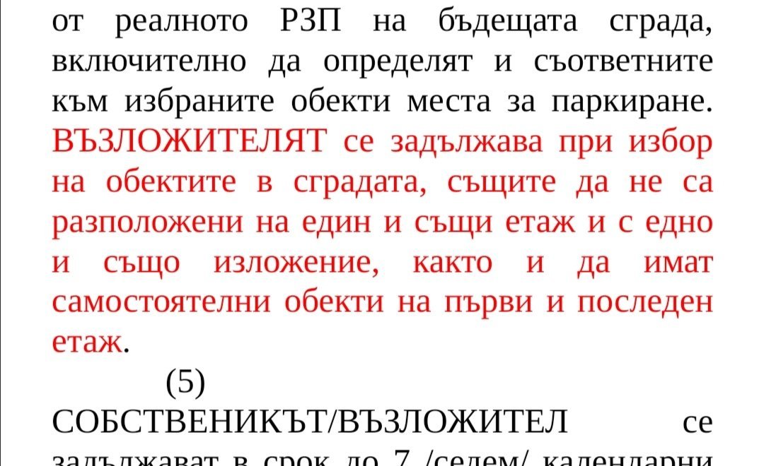 Разглеждам предварителния договор със строителя. Как го тълкувате написаното в червено?