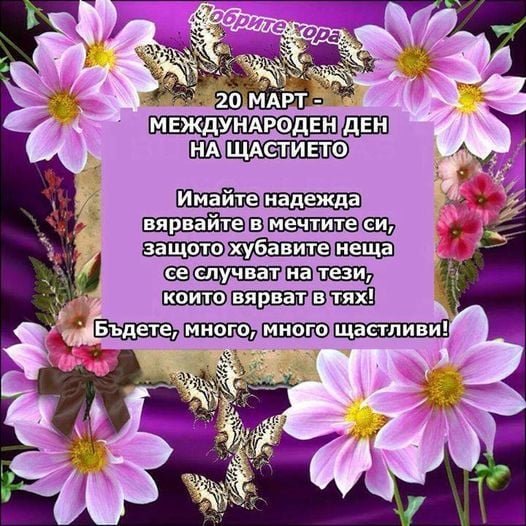 Днес е и Международният ден на щастието се отбелязва всяка година на 20 март.