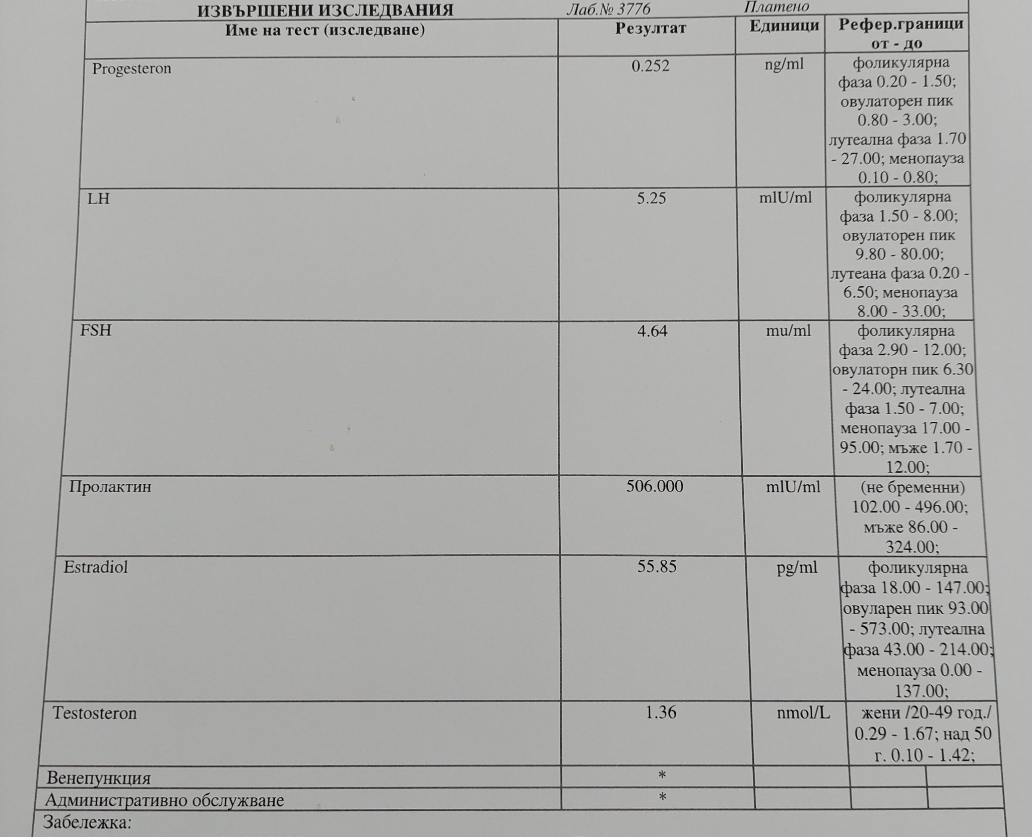 Здравейте, момичета! Днес си направих нови хормонални изследвания на 5-и ден от МЦ. Пролактина ще трябва да го повторя, тъй като нямаше възможност да лежа 20 мин. преди да вземат пробата. В сряда съм на лекар да стартираме фоликулометрия. Ще съм благодарна за мнения за резултатите 🍀