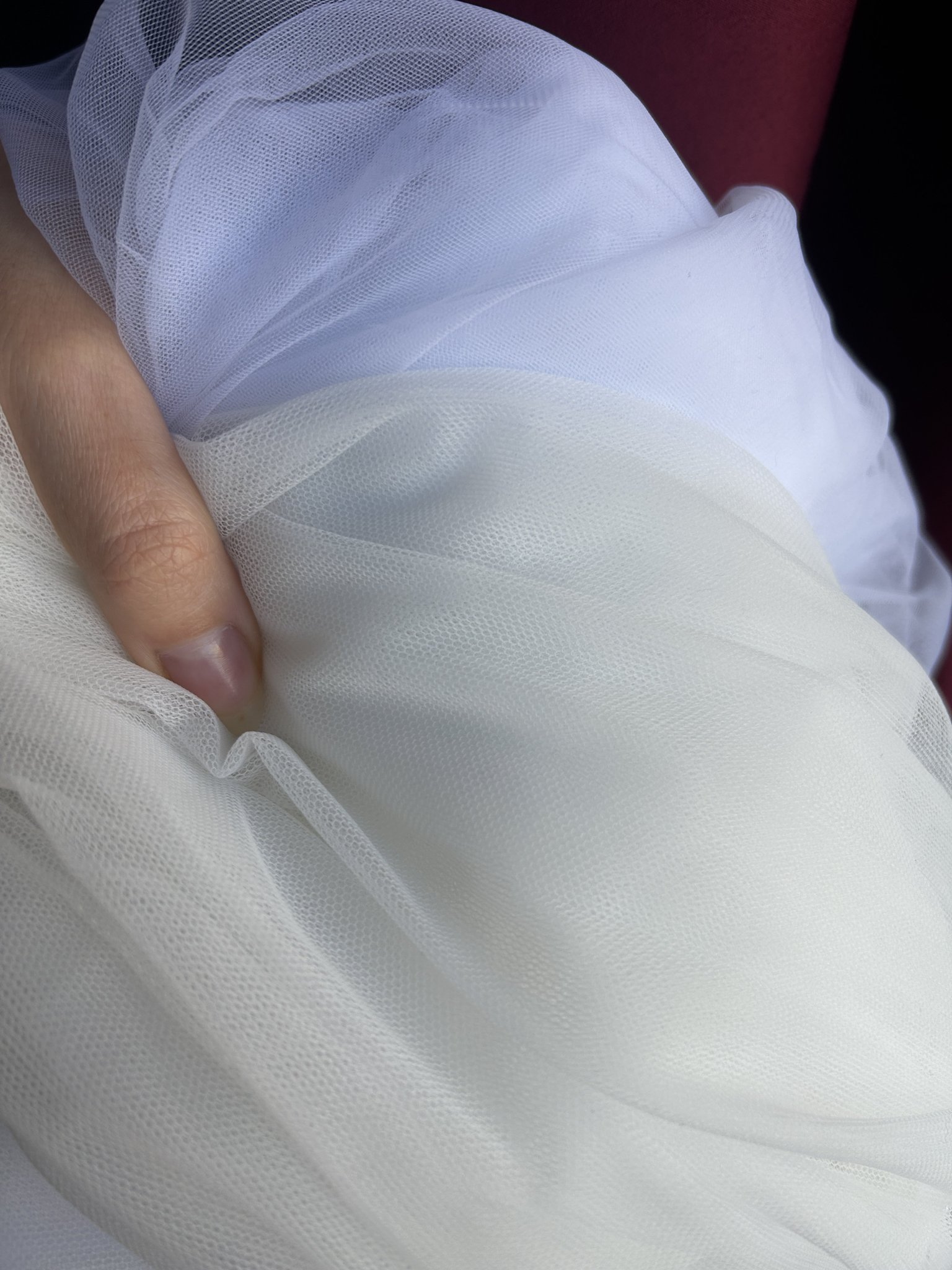 Сега воалът ми е по-бял от роклята. Роклята е слонова кост. Дали ще успея да боядисам воала с някакво чайче примерно? Вие какво мислите? Дайте акъл, моля ви!